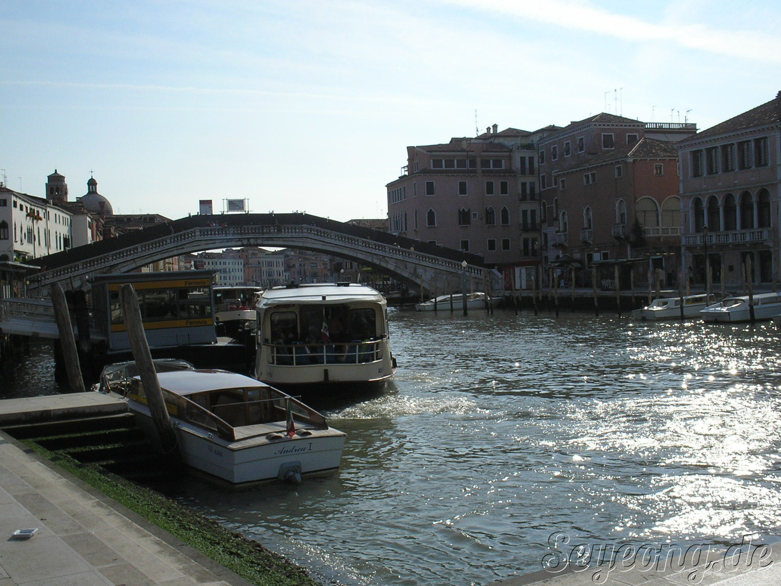 가는 길 리알토 다리가 보인다. 원래 목조다리였으나 대리석으로 재건되었다. 베네치아에서 가장 아름다운 다리로 다리위에 상점들이 있다고 한다.