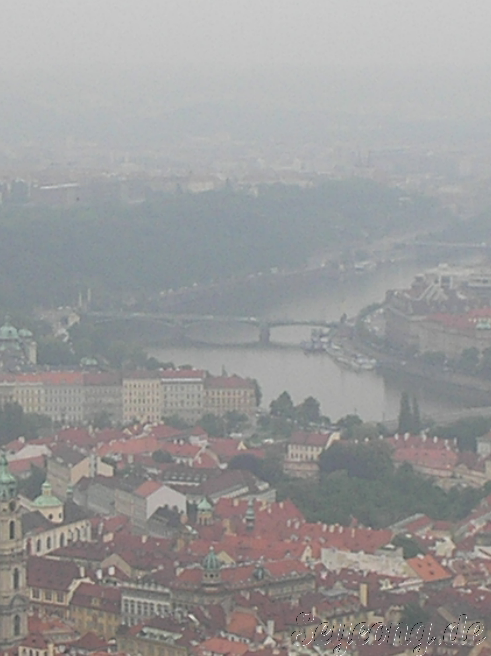 꽤 오래 올라가야 한다. 농담도 하면서 올라가서 프라하를 내려다 본다.