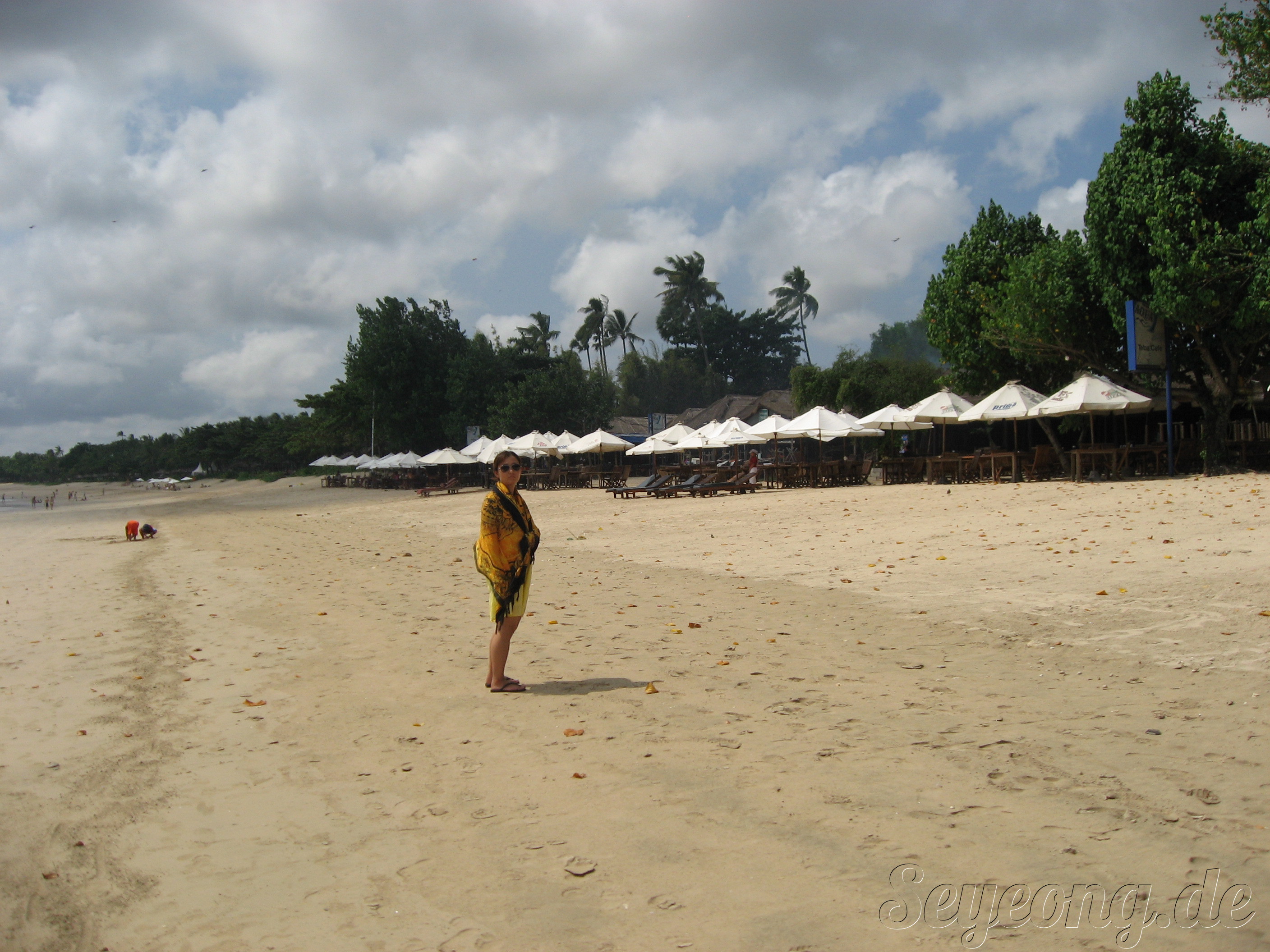 쿠타 해변이 서핑으로 유명하다면 이곳은 백사장의 조용한 해변으로 유명하다.