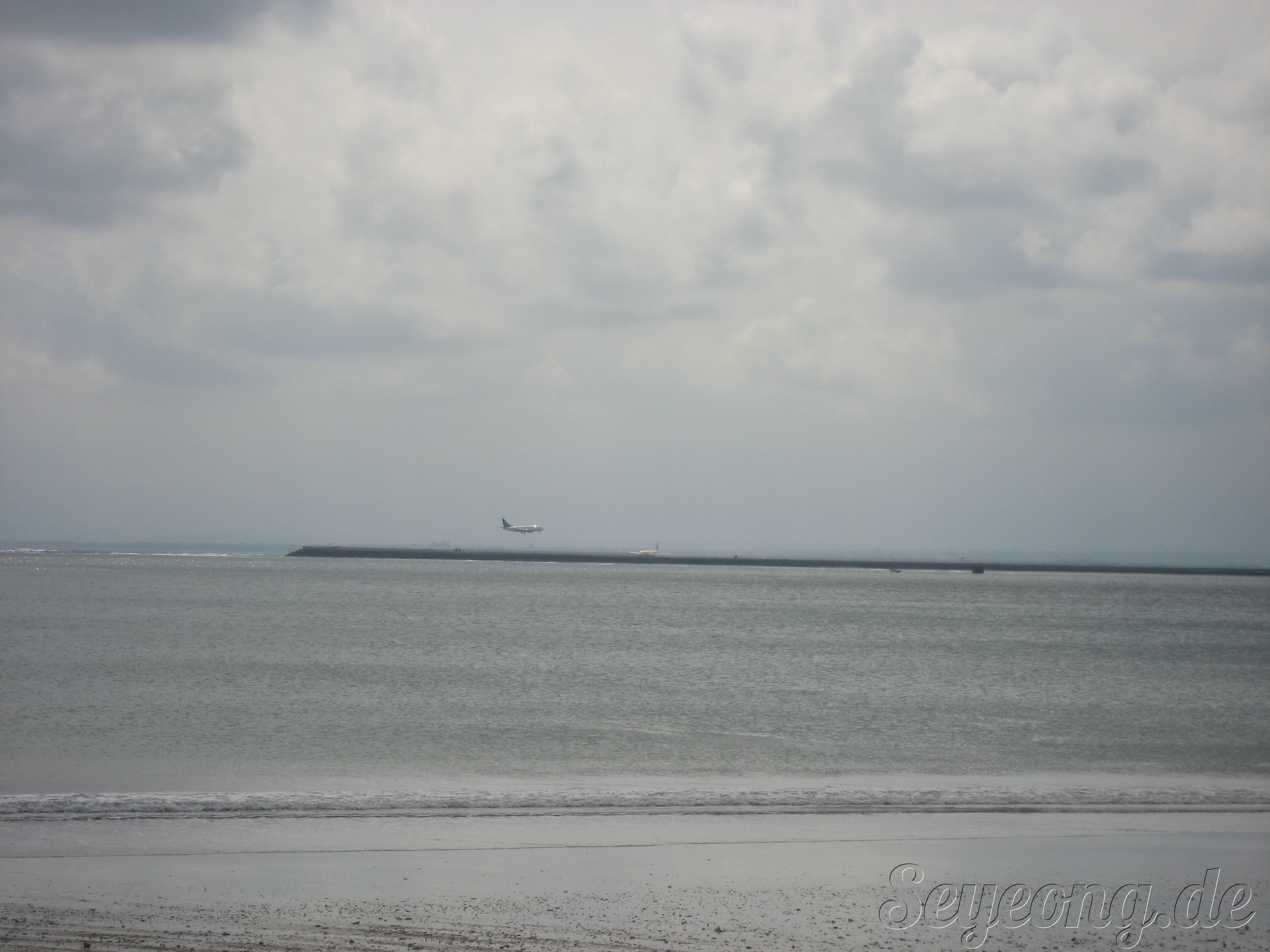 발리 공항에 안착하는 비행기가 멀리보인다.