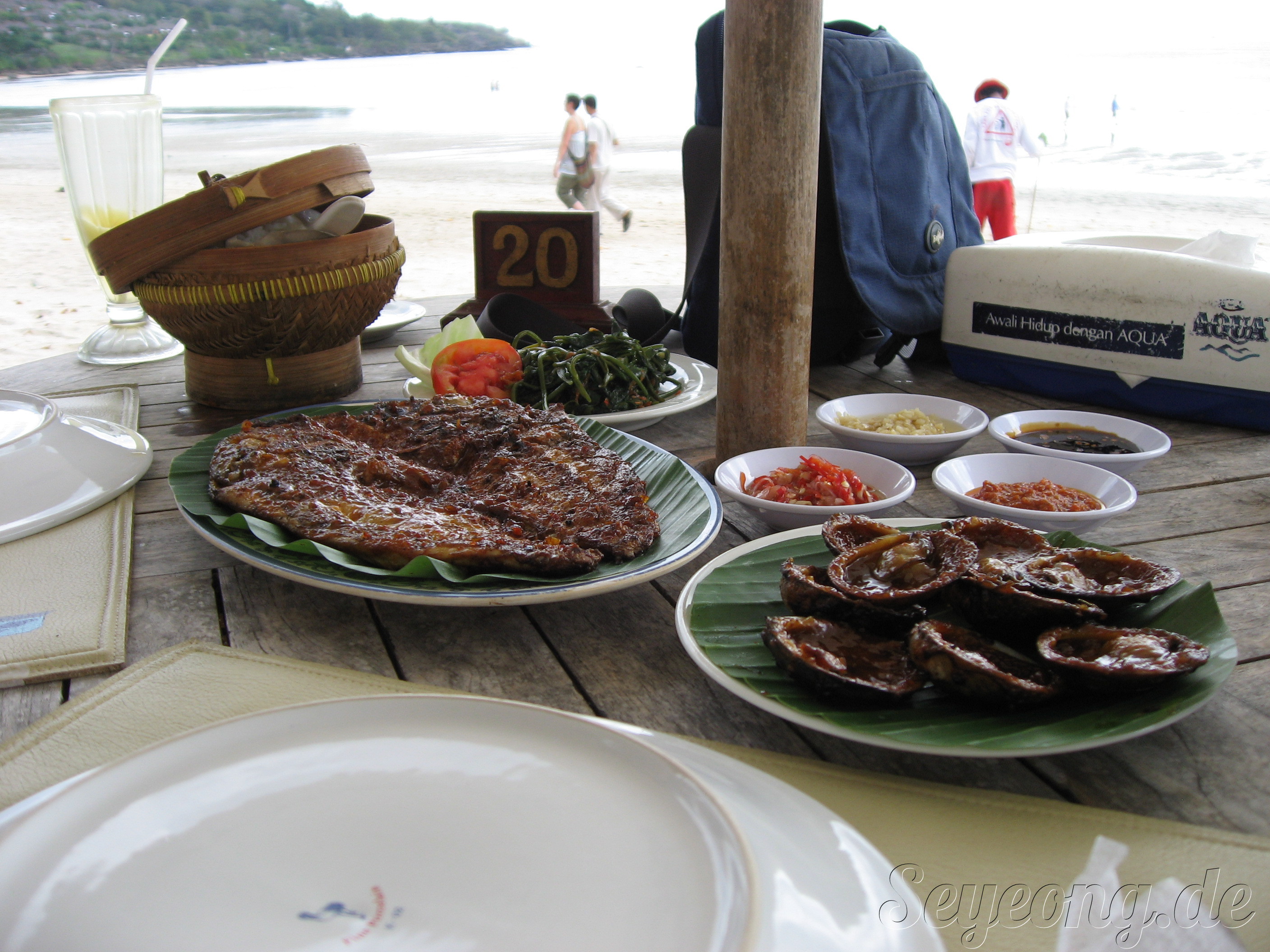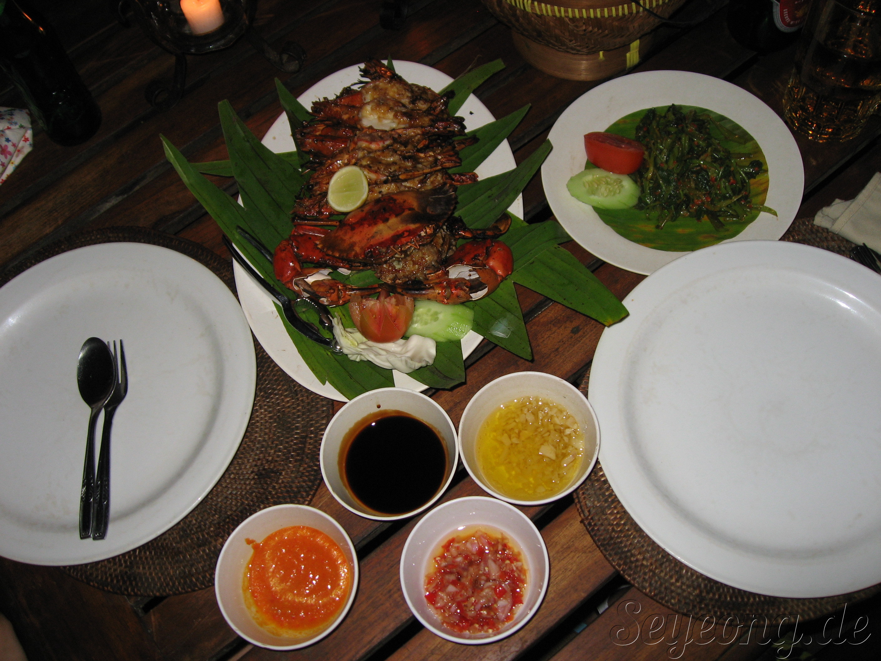 쿠타에 돌아와서 먹은 랍스타. 냉동이라 그런지 넘 실망 많이 하였다. 하지만 바닷가의 매력이라고 할까. 다양한 해산물을 싼값에 즐길 수 있는 발리의 다양한 먹거리가 맘에 든다.