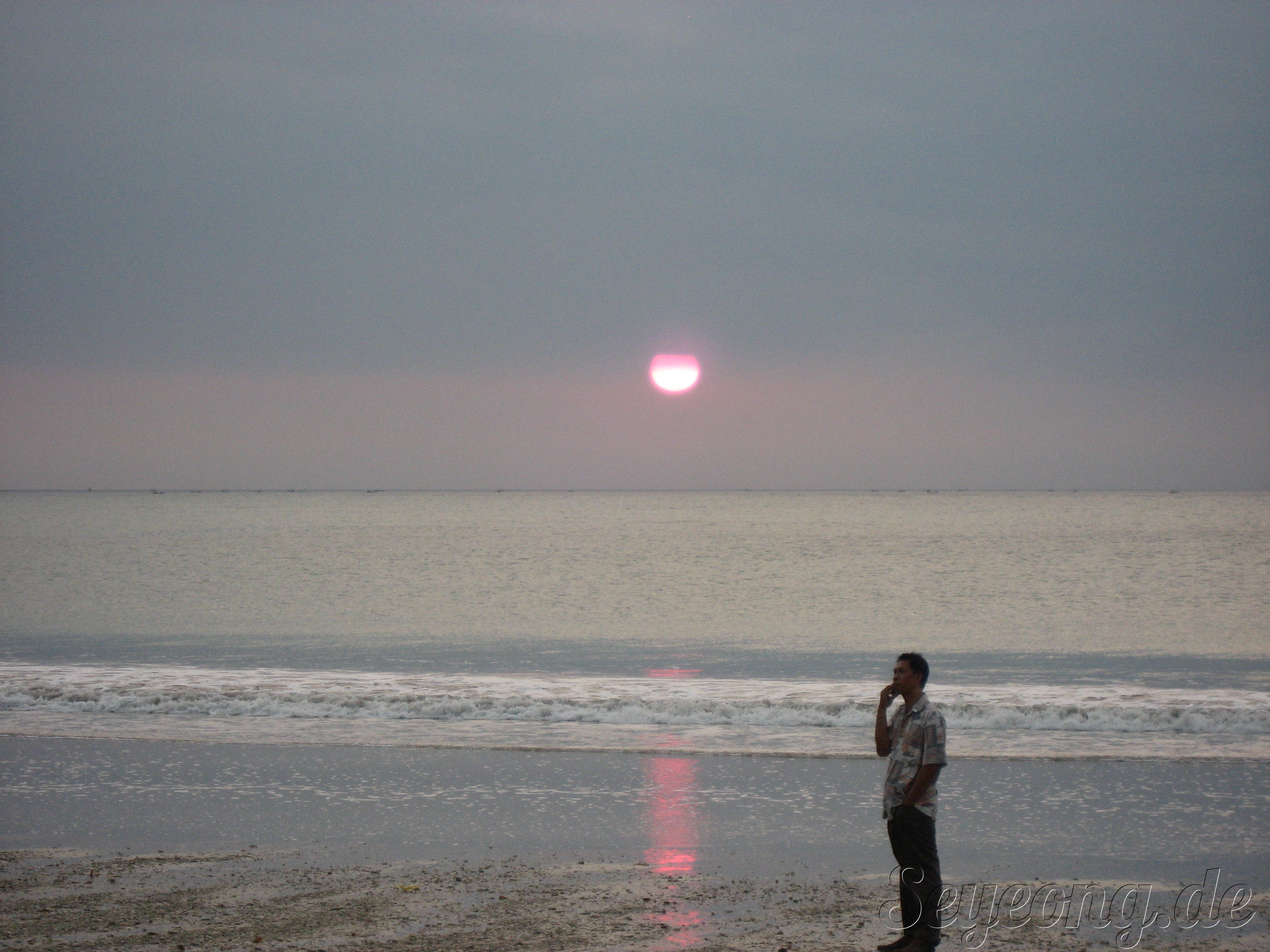 점심을 먹고 해수욕과 일광욕을 하니 해가 질 때가 되었다.