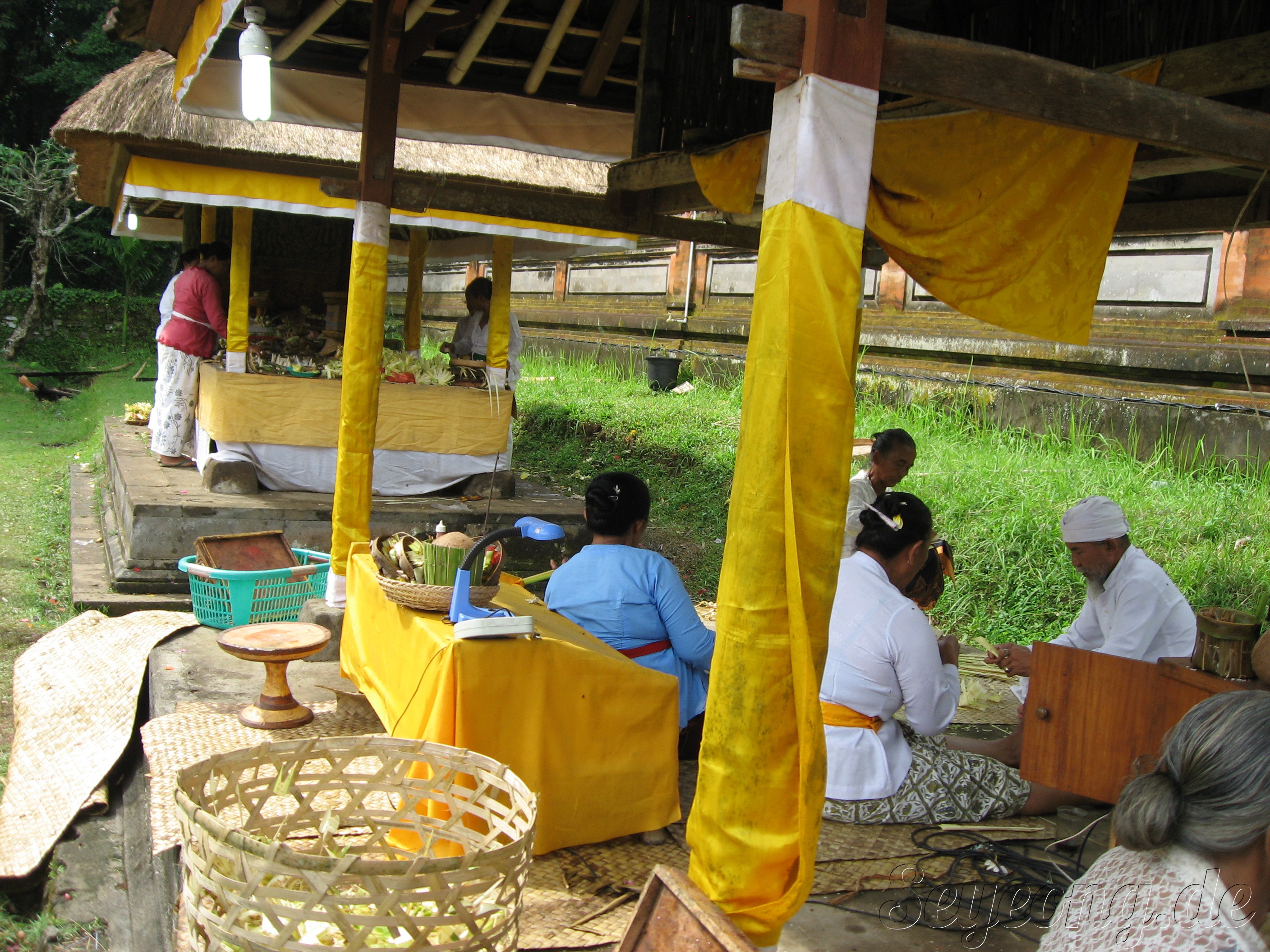 사원의 구석에서는 식에 쓰일 음식과 장식구를 만드느라 바쁘다.