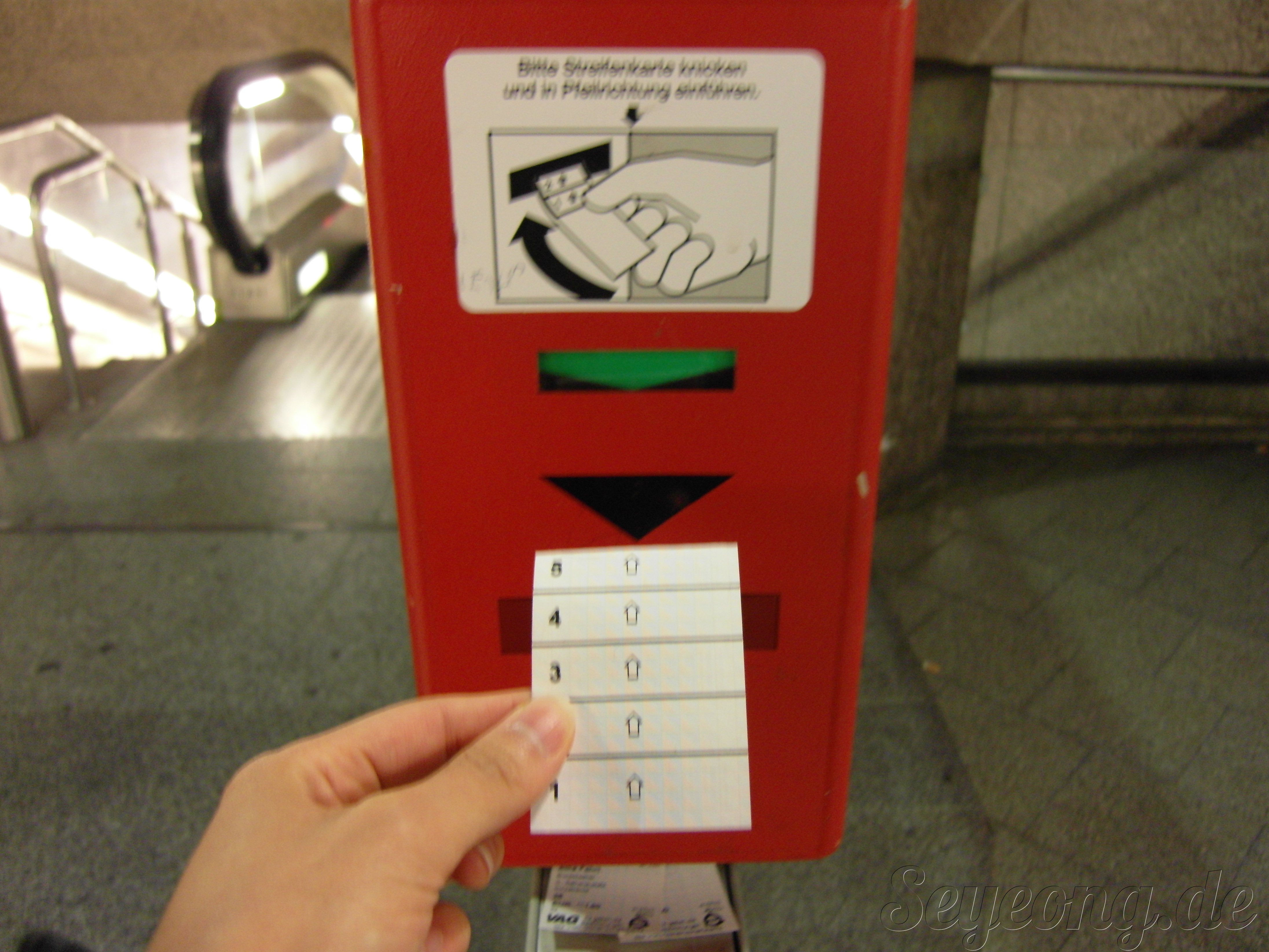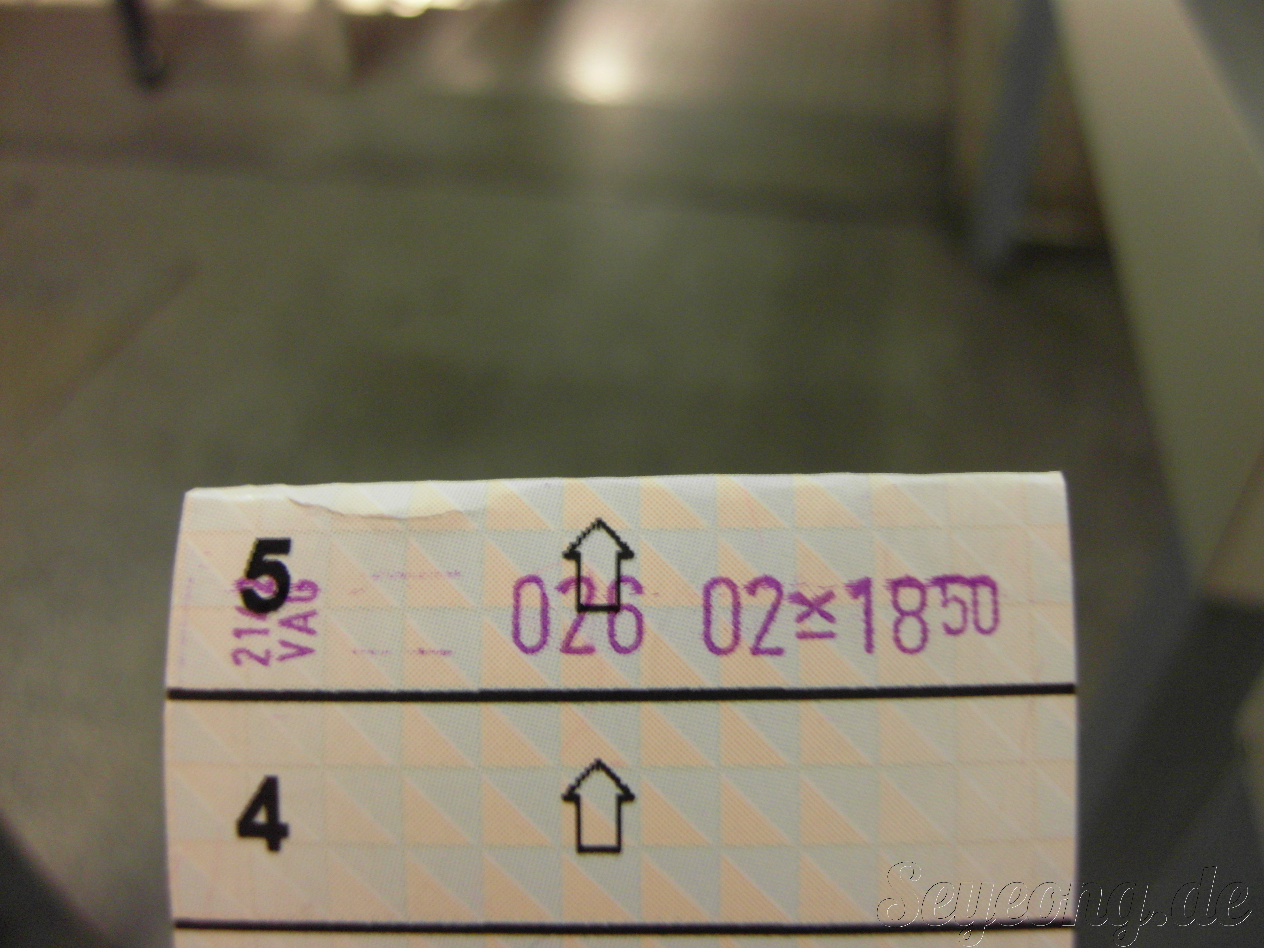 티켓을 사용할 때에는 펀칭(날짜와 시간을 찍을 수 있는)할 수 있게 사용할 부분을 접어서 사용한다. 독일이 처음이 아니지만 이런 부분은 나도 어색하게 느껴진다.