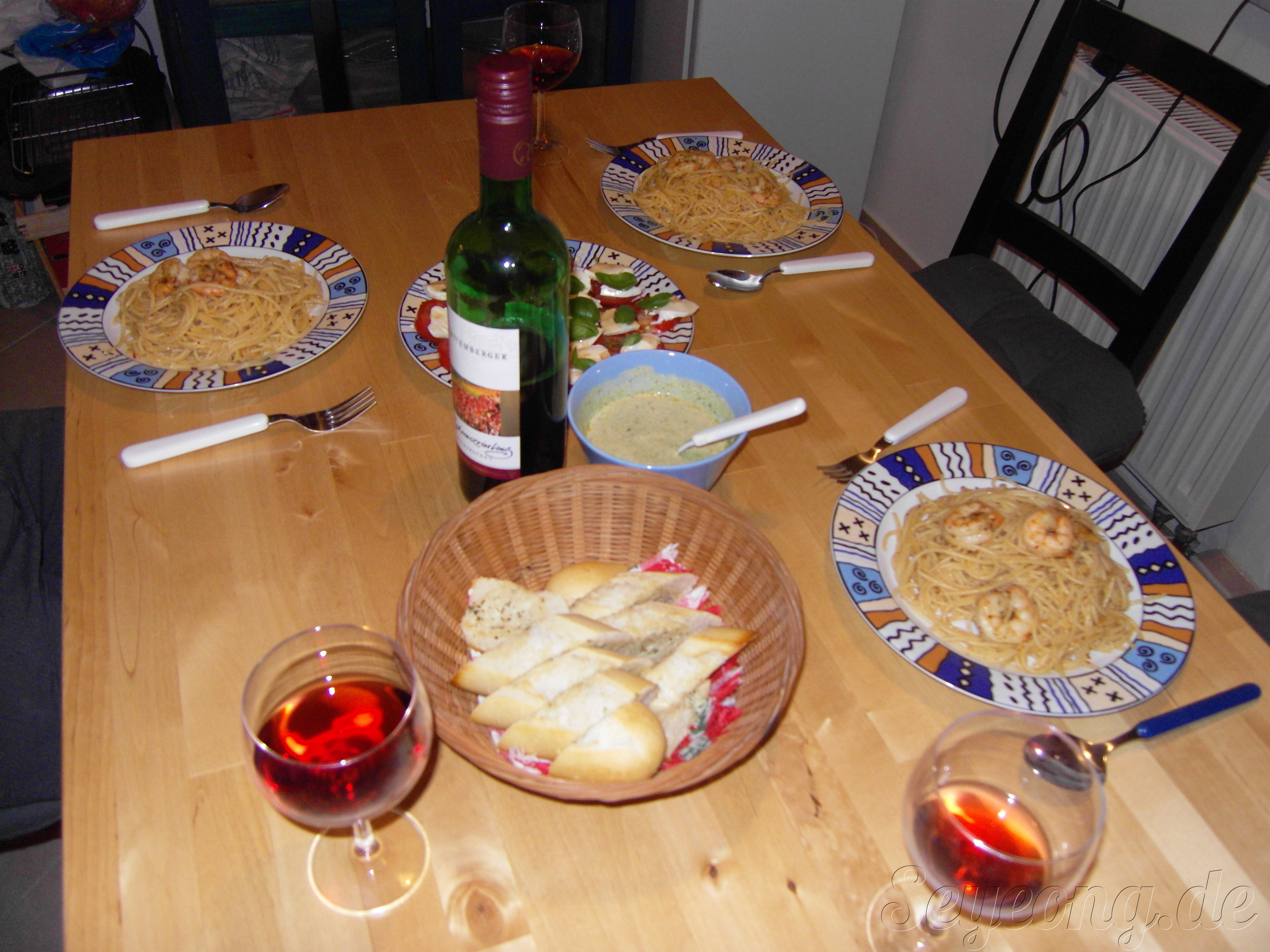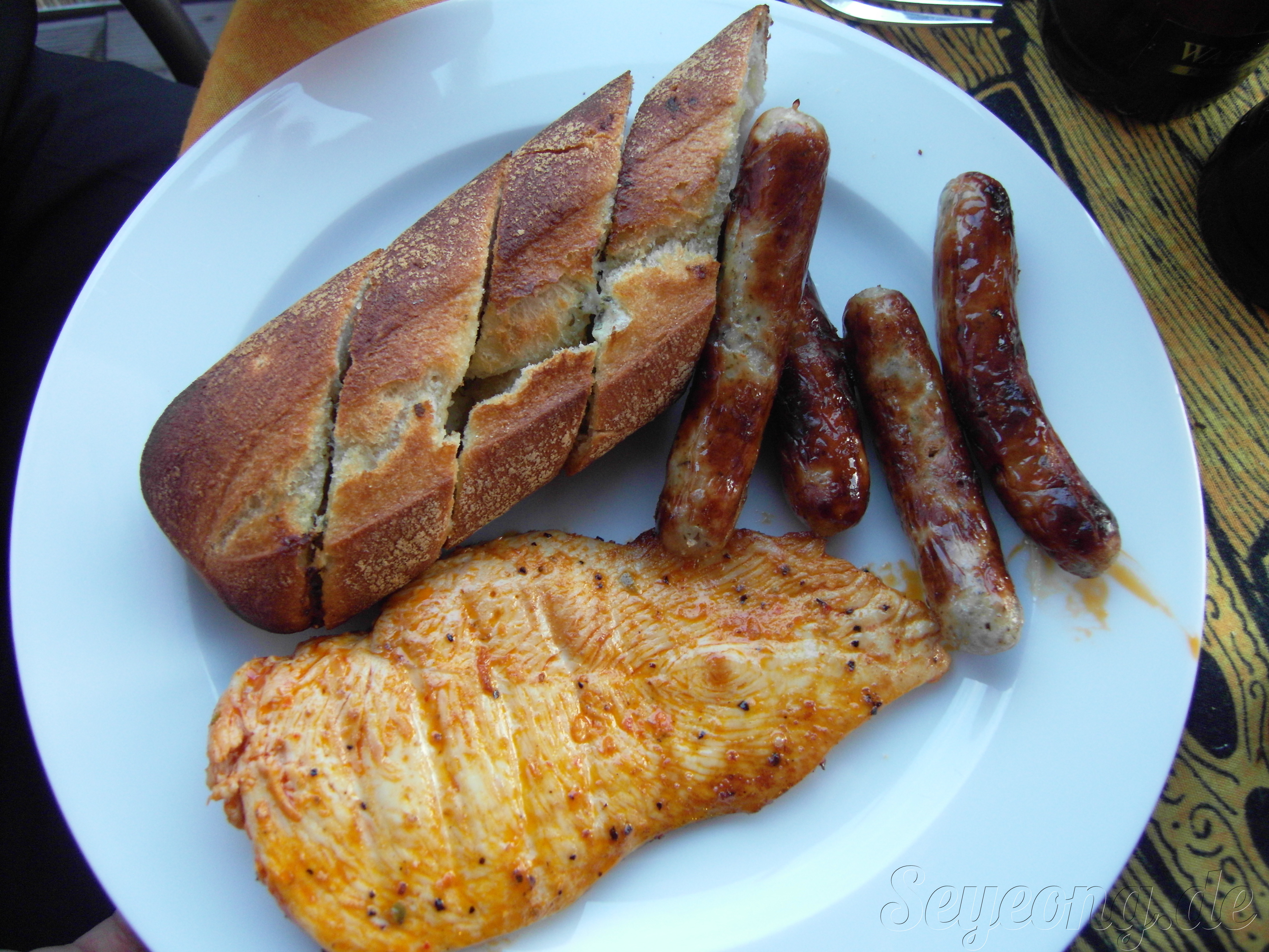 또 어느날 저녁은 마늘 빵과 그릴로 구운 소세지와 고기와 함께..