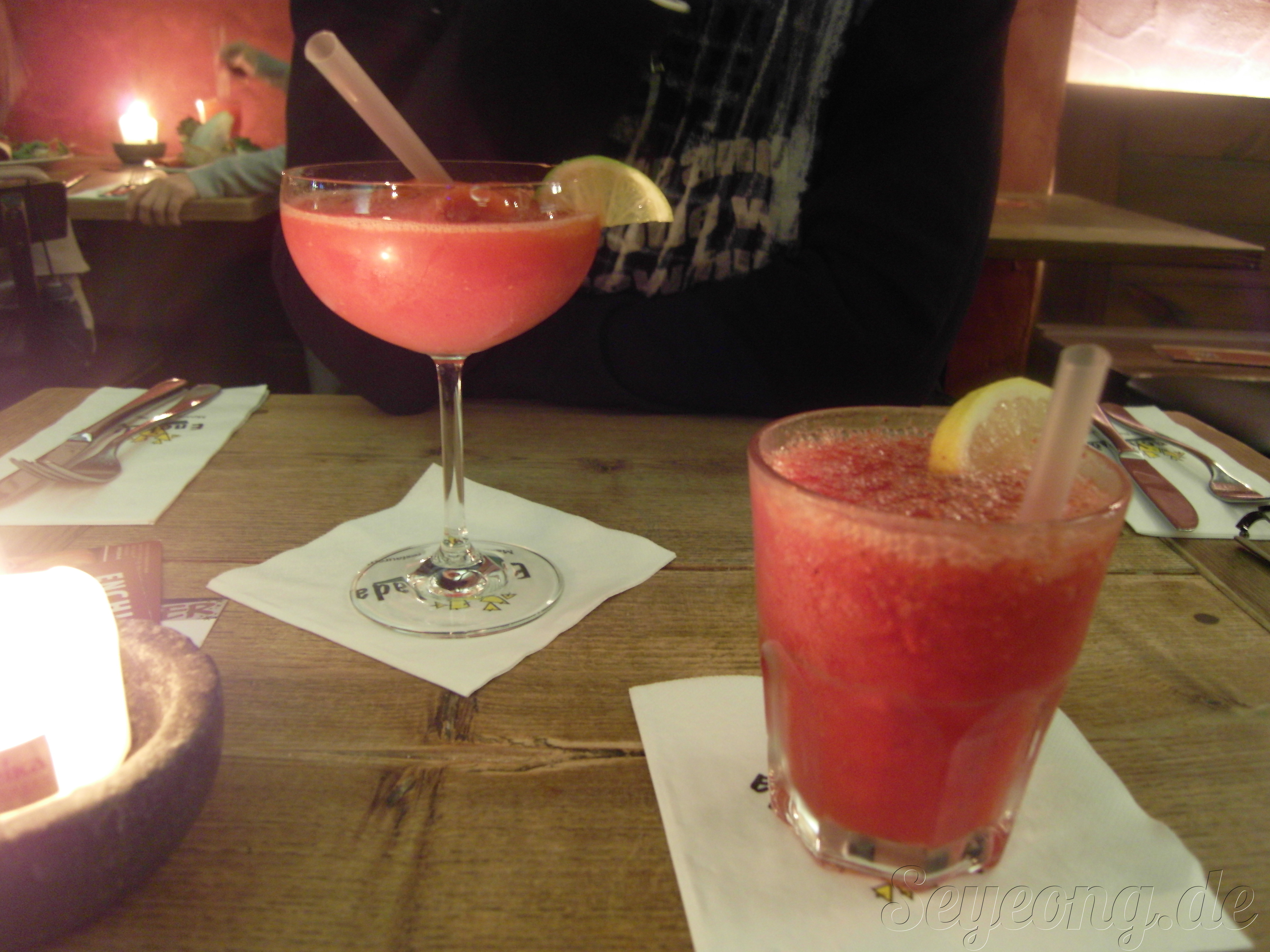 딸기 마가리타를 주문하고 음식을 기다리는 중..