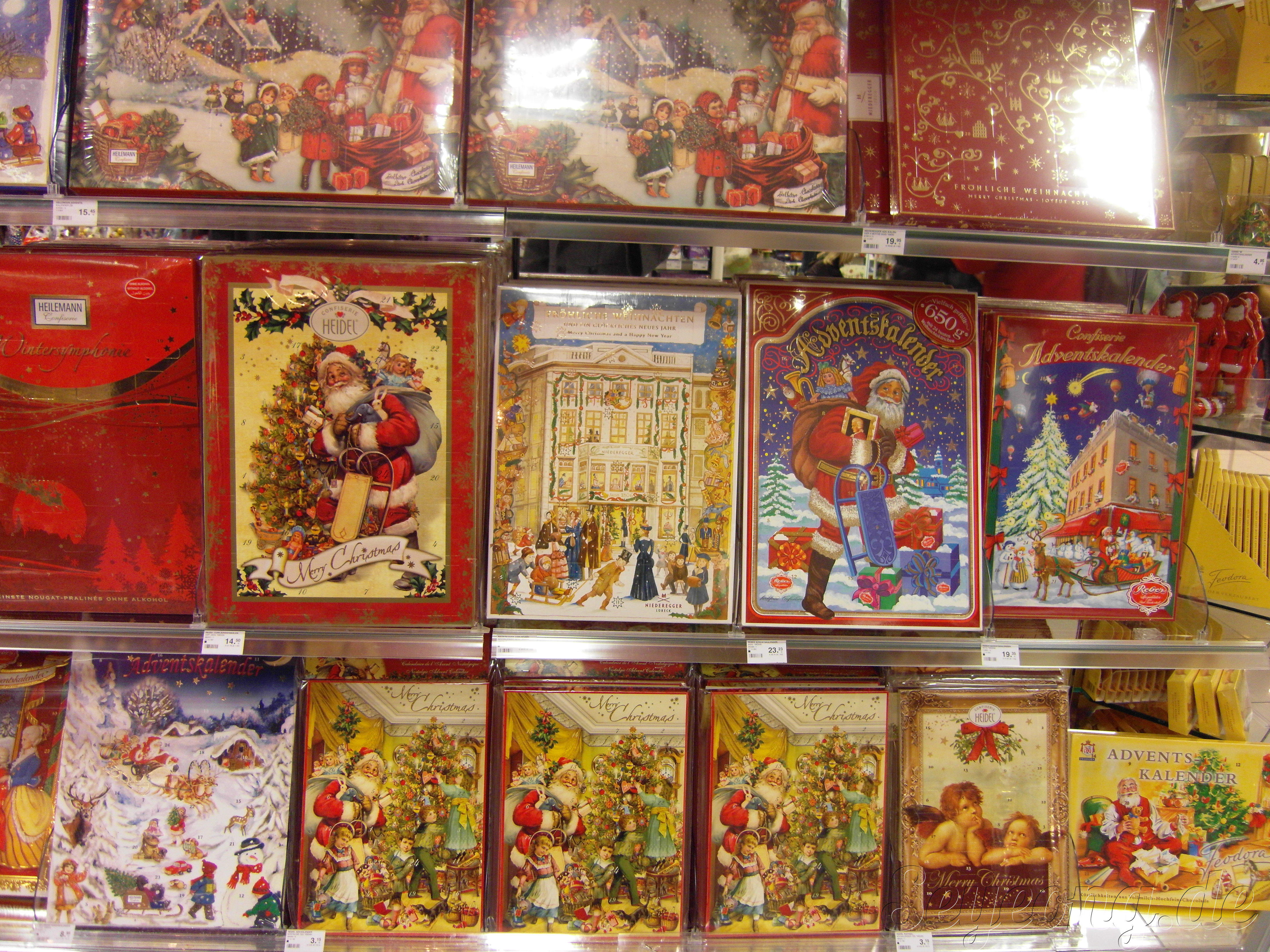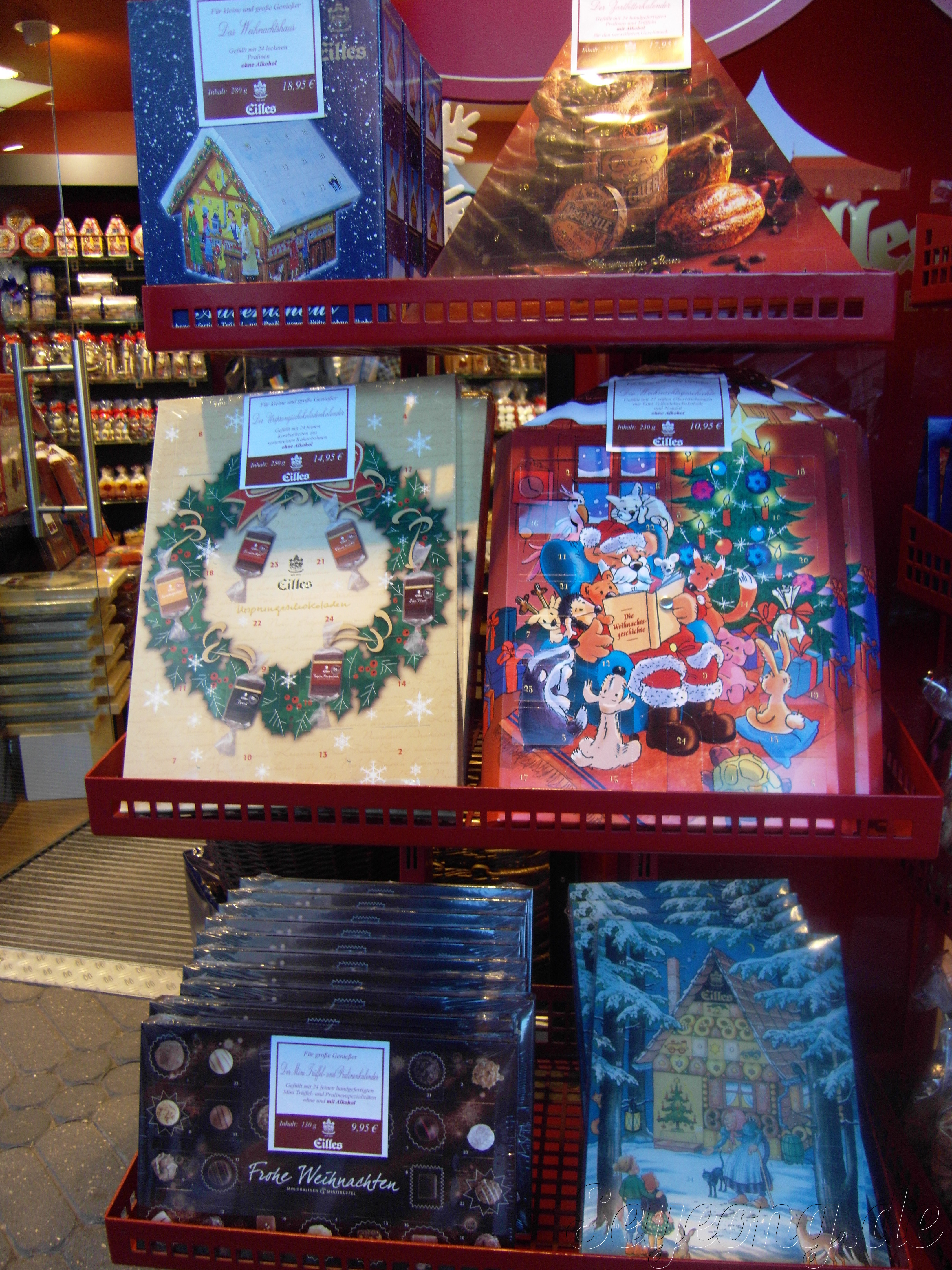 기독교가 국교인 독일에서는 크리스마스가 1년 중 가장 중요한 날이다. 12월이 되면 크리스마스까지 1일부터 24일까지 매일매일 날짜를 세는 “크리스마스 캘린더”가 있다. 더 놀라운 것인 이 캘린더가 10월 부터 있었고, 그 종류는 거의 초콜렛이다. 갖가지 초콜렛 브랜드에서 다양한 종류의 캘린더를 선보이는데, 아이부터 어른까지 서로 주고 받는다.