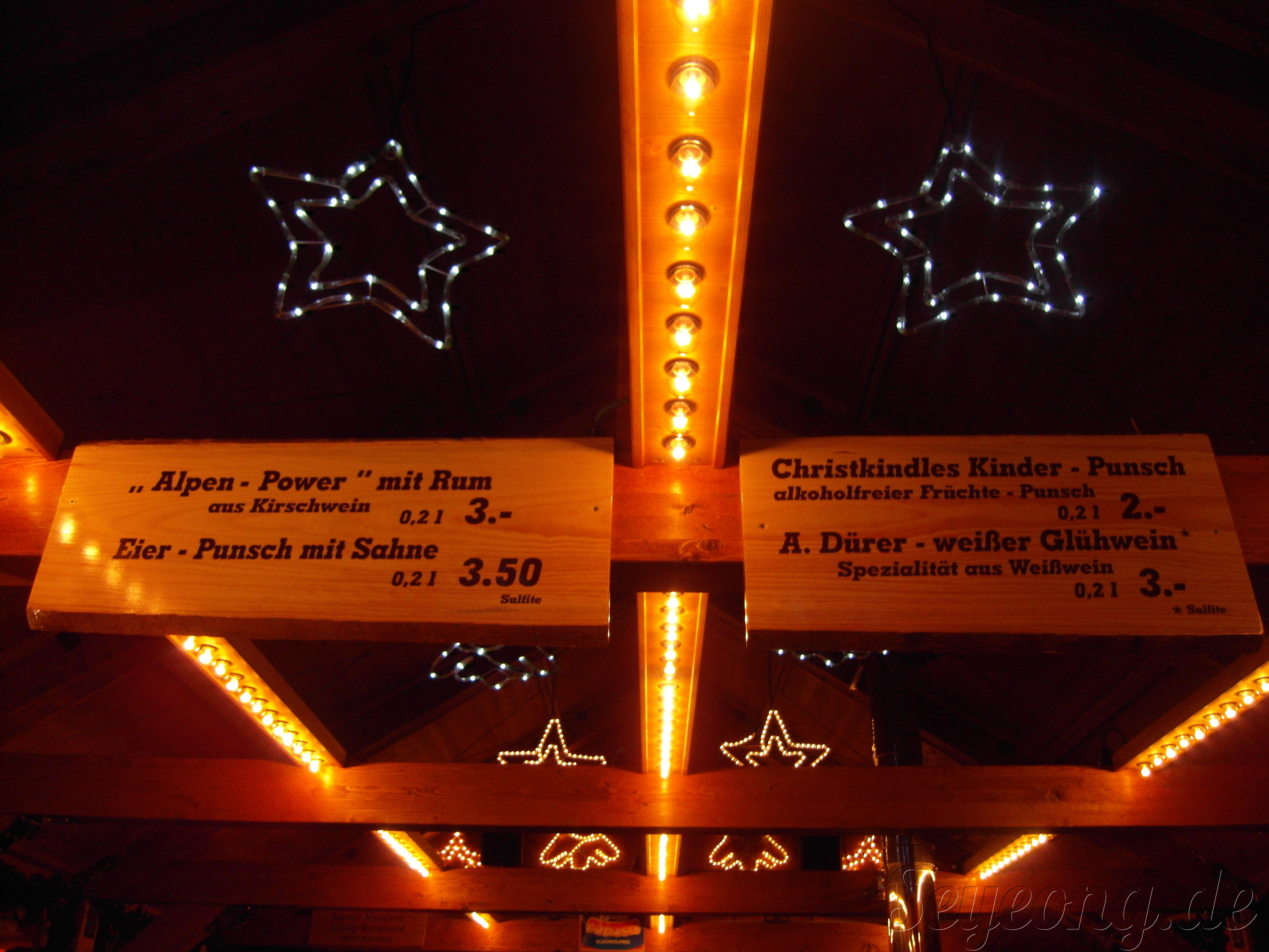 뉘른베르크에 크리스마스 시장으로 붐비는 길가 한구석에 세워진 글루와인 부스.