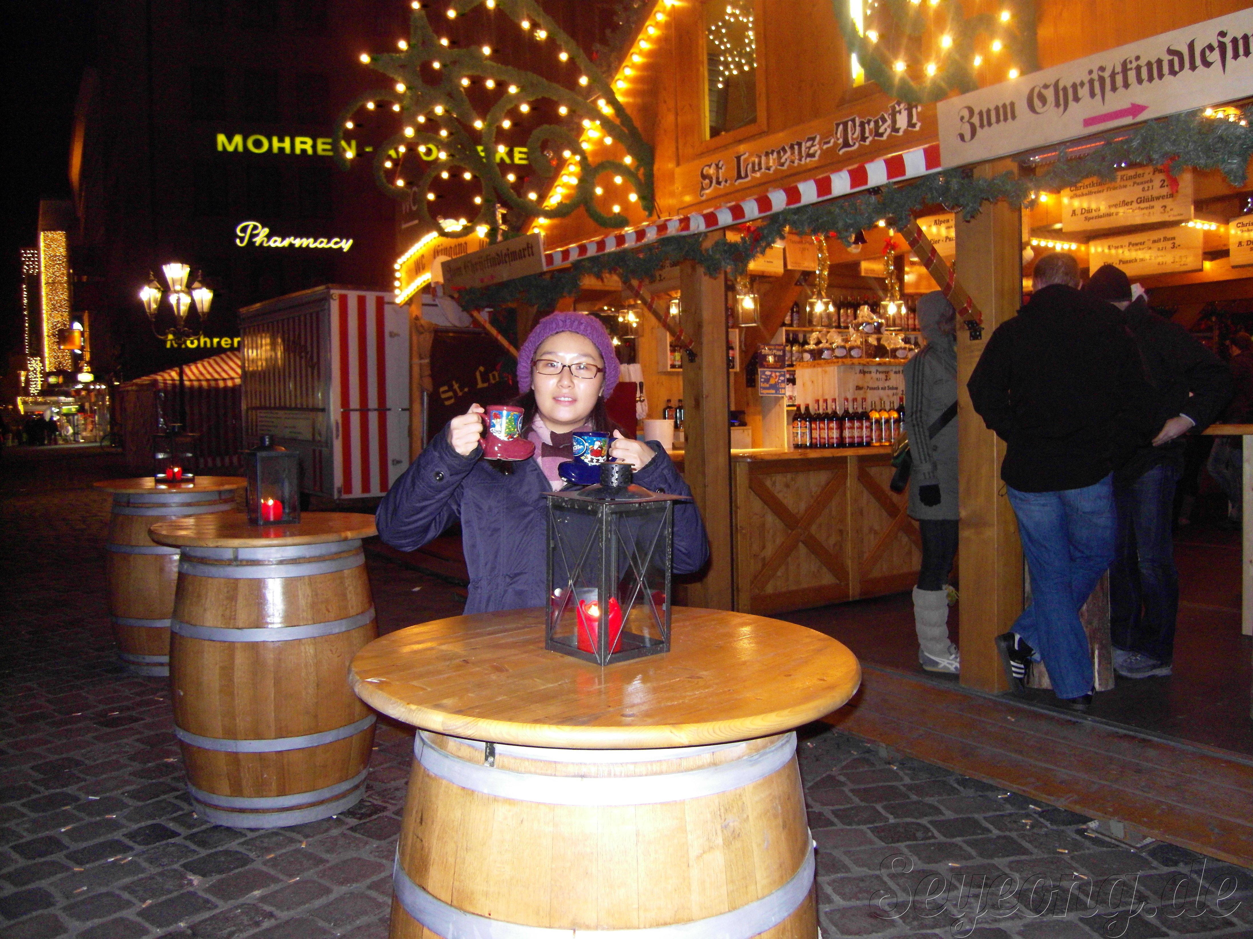 독일에서는 밖에서 음료를 주문할 때, 컵의 값까지 같이 내야 하는데, 나중에 잔을 돌려주면 돈을 돌려받을 수 있다. 예를 들어, 2개의 글루와인을 주문했을때, 총 11유로를 내었고, 총 6유로는 순수한 글루와인 값이므로 잔 값인 5유로는 다마시고 잔을 돌려주면 받을 수 있는 것.