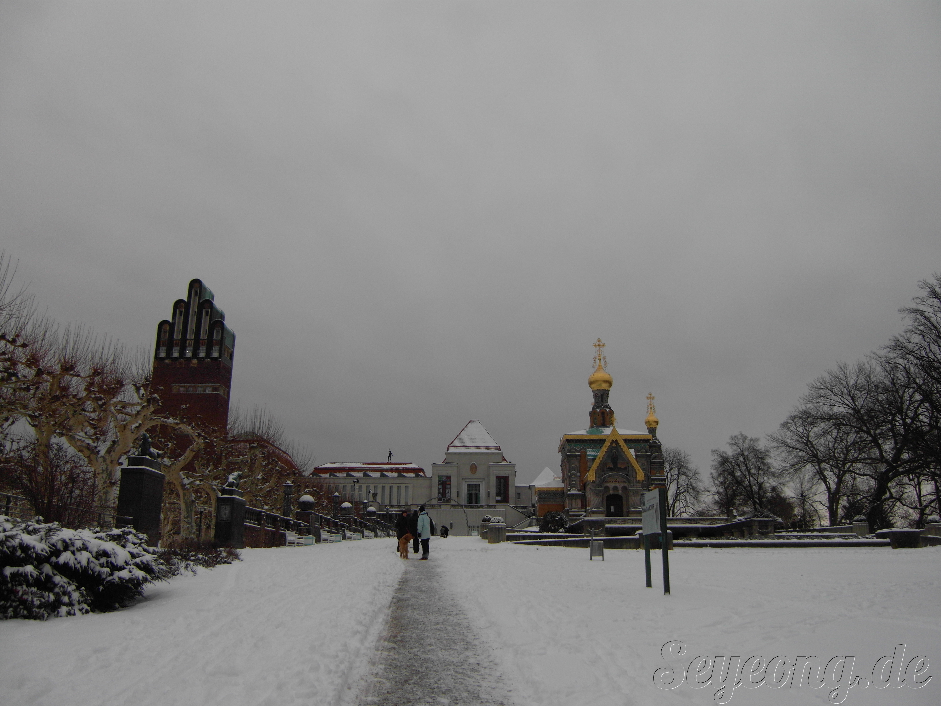 눈으로 뒤덮인 담슈타트. 이곳에 유명한 러시아 교회를 보기 위해 동산을 올랐다.