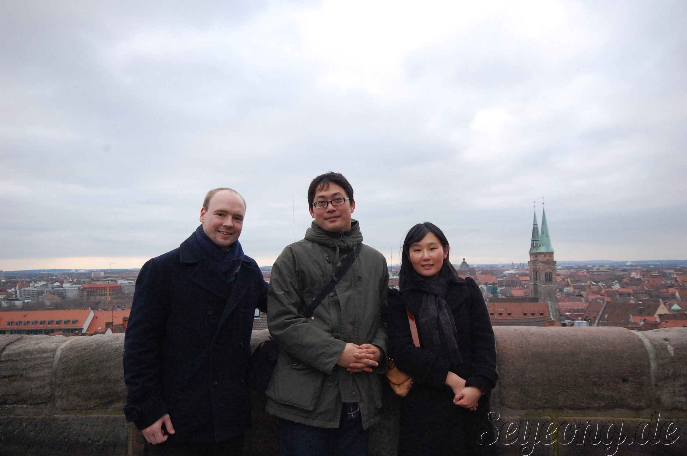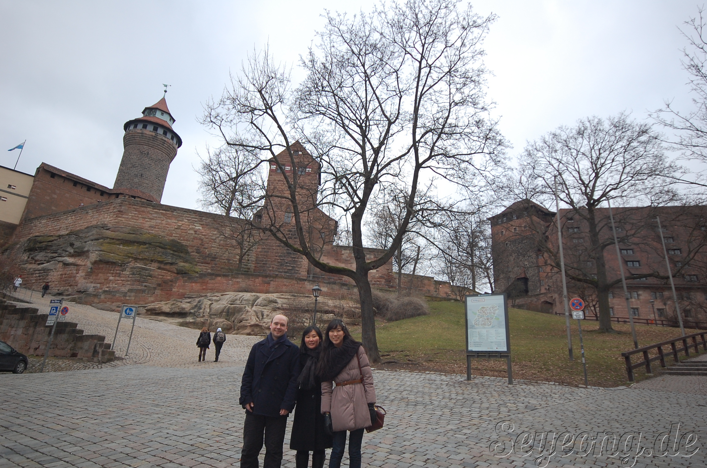 은정 언니 부부 놀러온 날 April 8, 2011뉘른베르크 (Nürnberg)seyeong 독일 환경 프로젝트에 당첨된 은정 언니 부부, 뉘른 베르크에 1박 2일로 놀러왔다. In front of Nuernberg Castle 뉘른베르크 관광 가이드가 된 우리 In Castle In Castle2 날씨는 조금 추웠지만 나름 여러가지 설명하면서 관광할 수 있었다. With Eunjung 빨강 줄무늬가 있는 집은 뉘른베르크에서 가장 오래된 건물이라고 한다. In front of Oldest House in Nuernberg