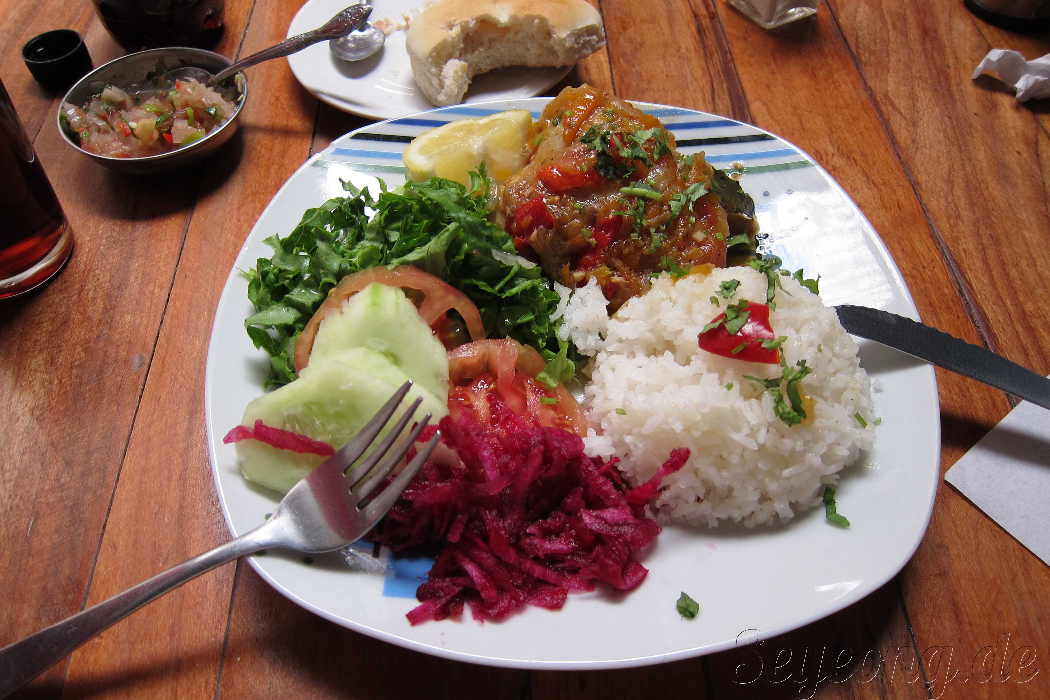 론리플래닛 추천 나름 가격 싼 레스토랑. 물자가 한정된 곳이라 자칫하면 레스토랑의 가격대는 정말 주체할 수 없을 정도로 비싸기도 하다.