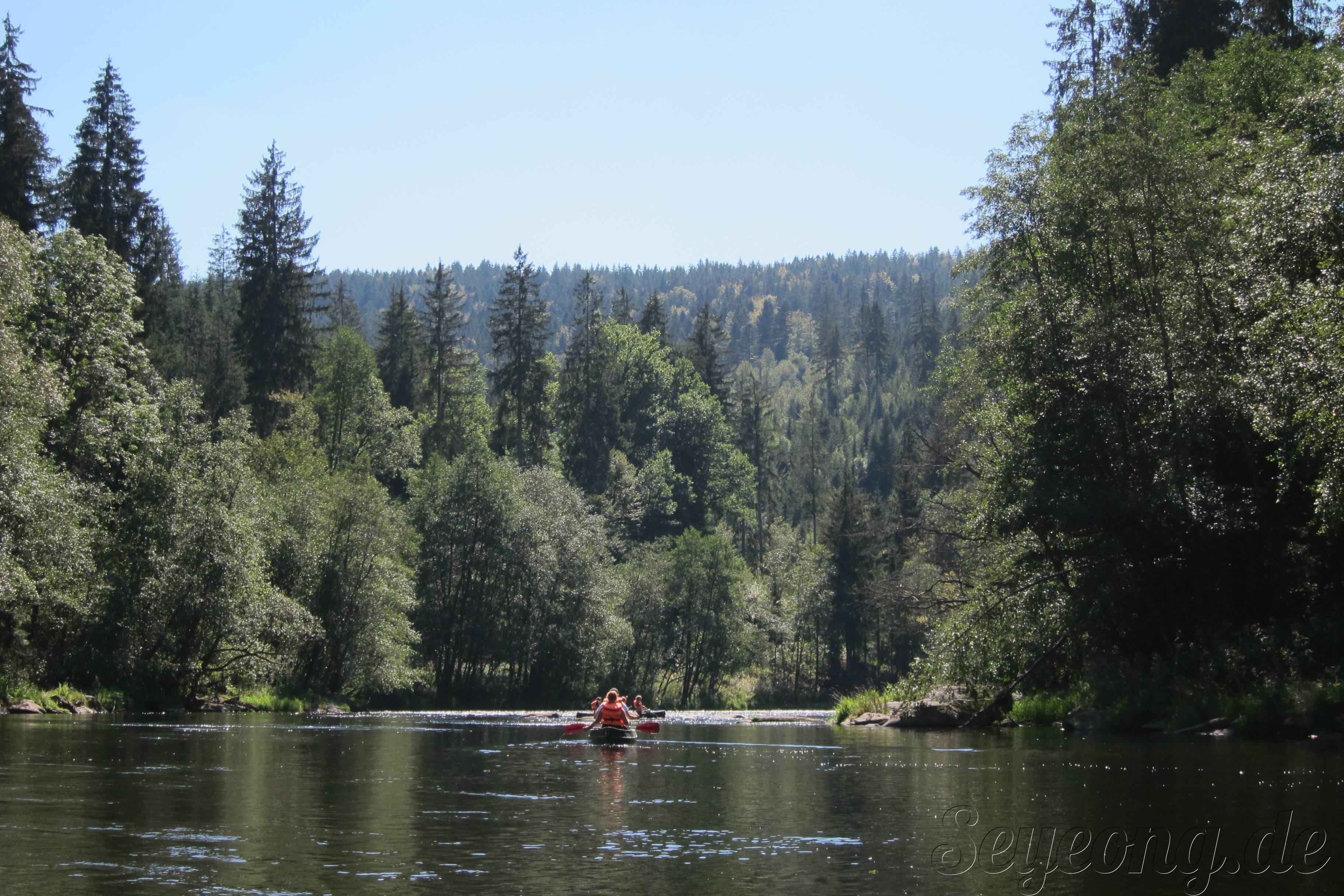토요일 아침 보물찾기를 마치고 나선 카누 타기. 주변이 바이에른 숲이라 각종 활동을 비교적 저렴한 가격으로 즐길 수 있다. 2인용 카누는 36유로.