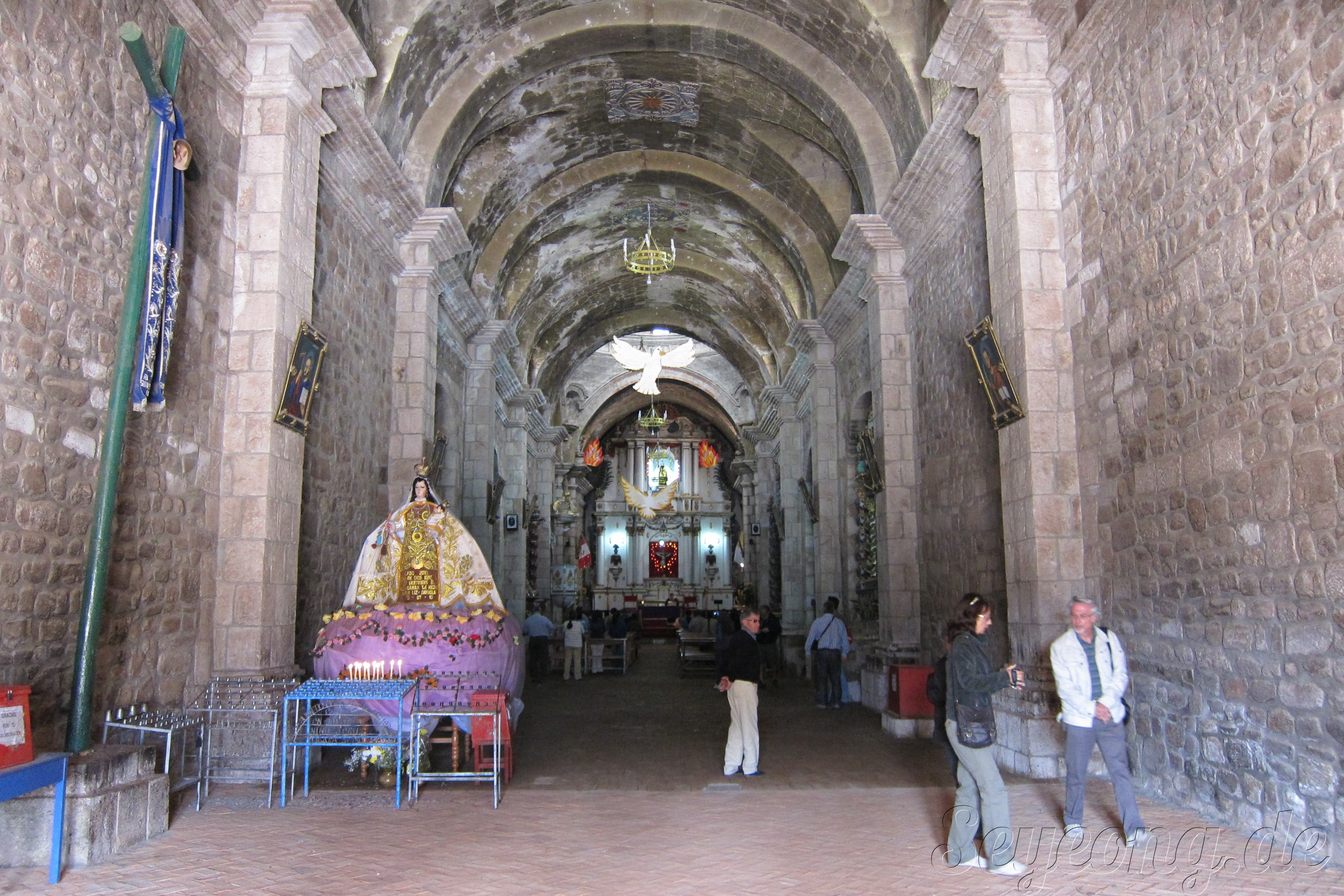 주로 스페인식의 교회와 성당은 잉카의 제사당위에 지어졌다. 하나님을 믿지는 않지만 아직도 잉카의 후손이라고 믿는 마을 사람들은 잉카의 힘을 느끼기 위해 예배당에 앉아 자기만의 기도를 드린다고 한다.
