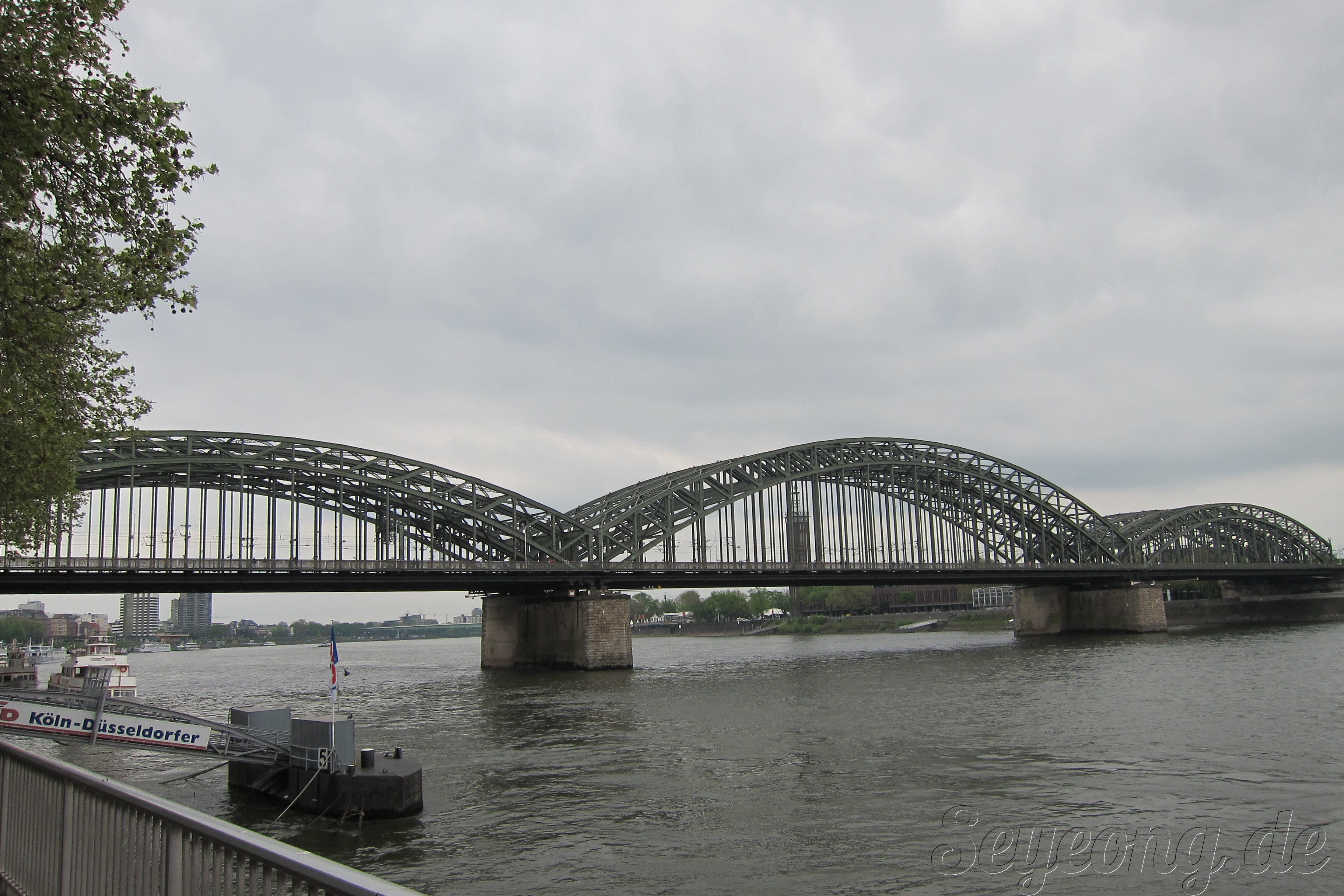 한강과 같아 보이는 거대한 넓이의 라인 강을 연결하는 호엔졸렌 다리.