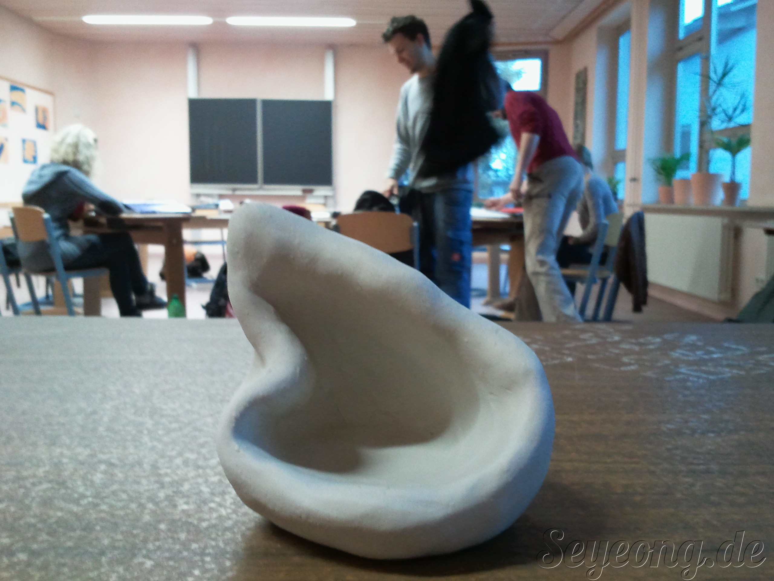 저번에 만들지 못했던 자유형 (Das freie Form)을 도전하였다. 일주일이 지나서 그런지 비닐이 싸였던 흙이 숨을 쉬었나 보다. 만지면 만질 수록 들어갔다.