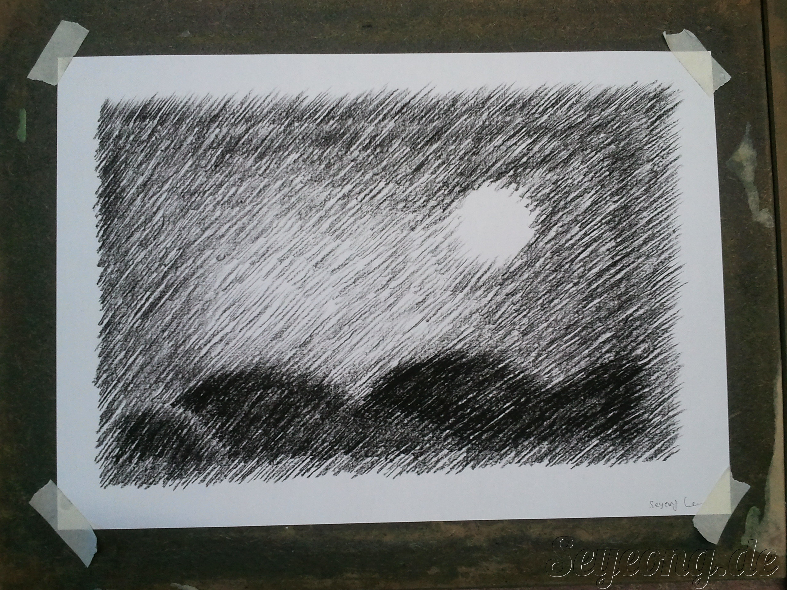 저번의 과제가 아직 미완성이지만, 이번엔 여러개의 언덕과 해가 떠 있는 전경을 그렸다. 뭔가 구체적으로 설명해 주면 좋지만 너무 추상적인 설명이라, 그리다 다시 듣고, 그리다 다시 듣고.