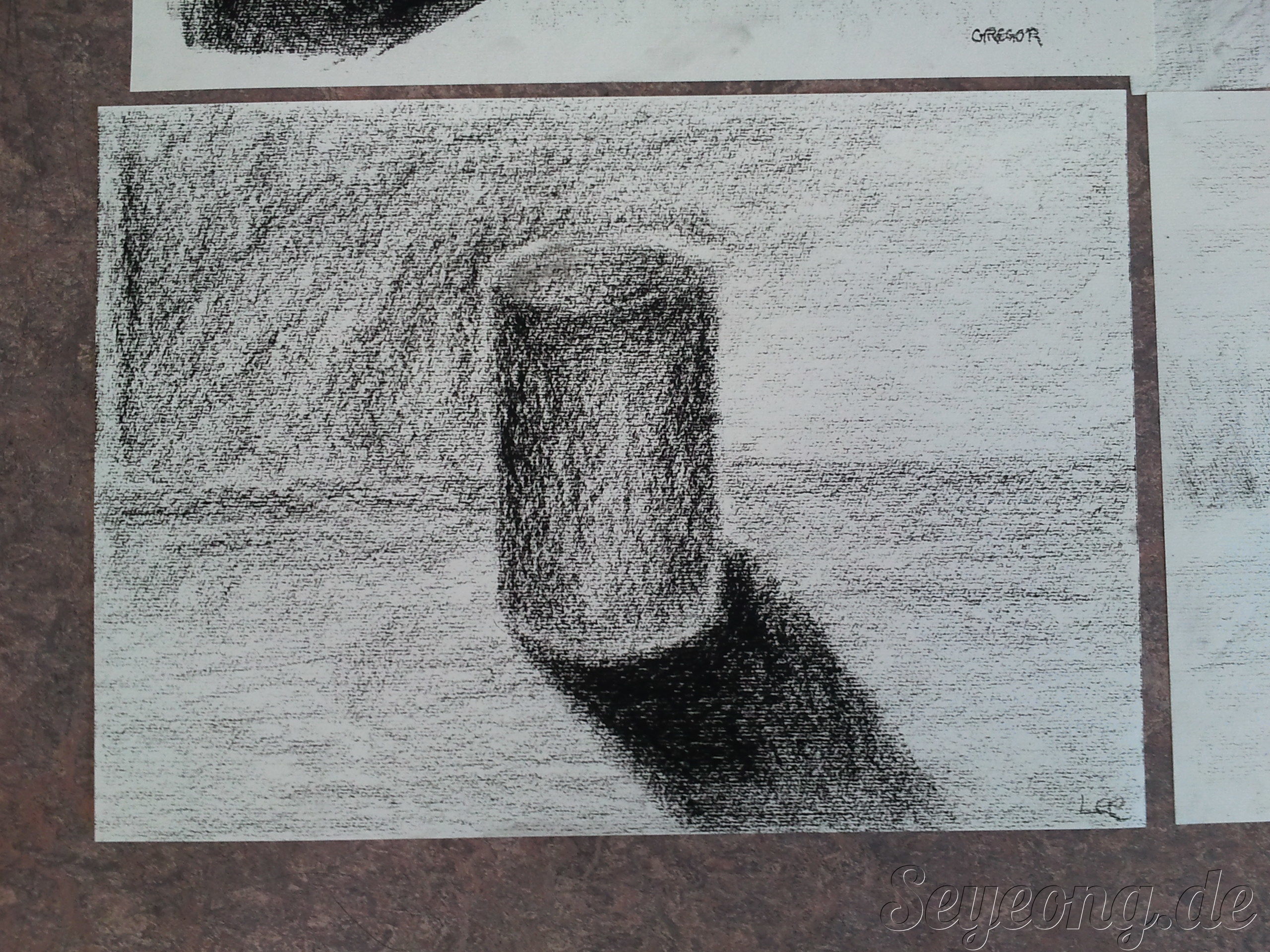 구를 그렸던 저번과 다르게 이번엔 원기둥을 그렸다. 빛이 어디에 오고 그림자가 어디에 지고 보고 하는 게 아니라 생각해서 그리는 거라 쉽지가 않다. 지우개로 지워도 되는 일도 아니구.
