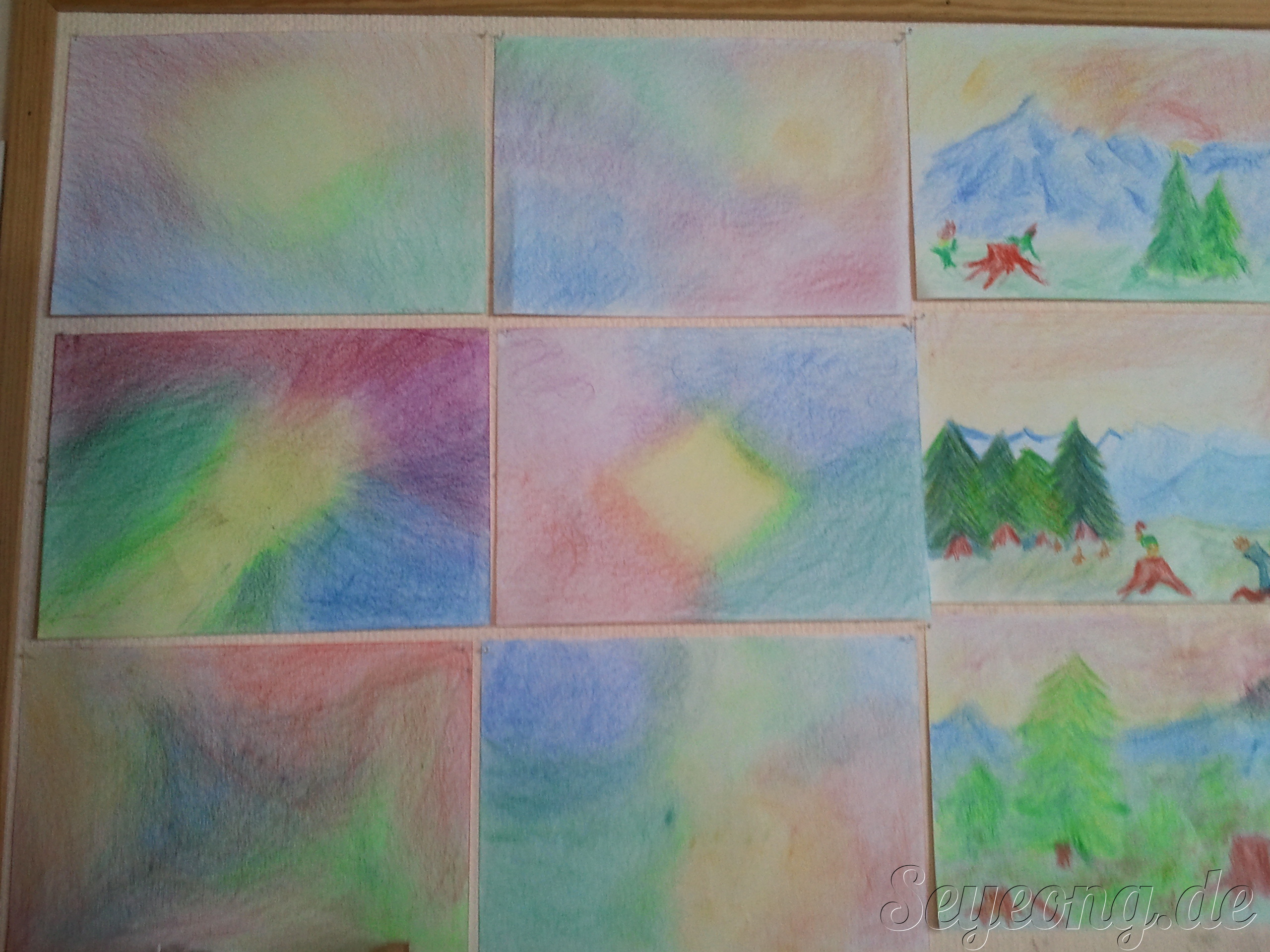 새로운 과목이 시작되었다. 발도르프 수업에서 칠판에 그림을 그리는 것은 굉장히 중요하다. 이야기나 어떤 주제를 가지고 배울때 그림을 그려 그것을 배우고 듣는다. 이곳에서 사용하는 분필 또한 색도 색이지만 질이 너무나 좋다.