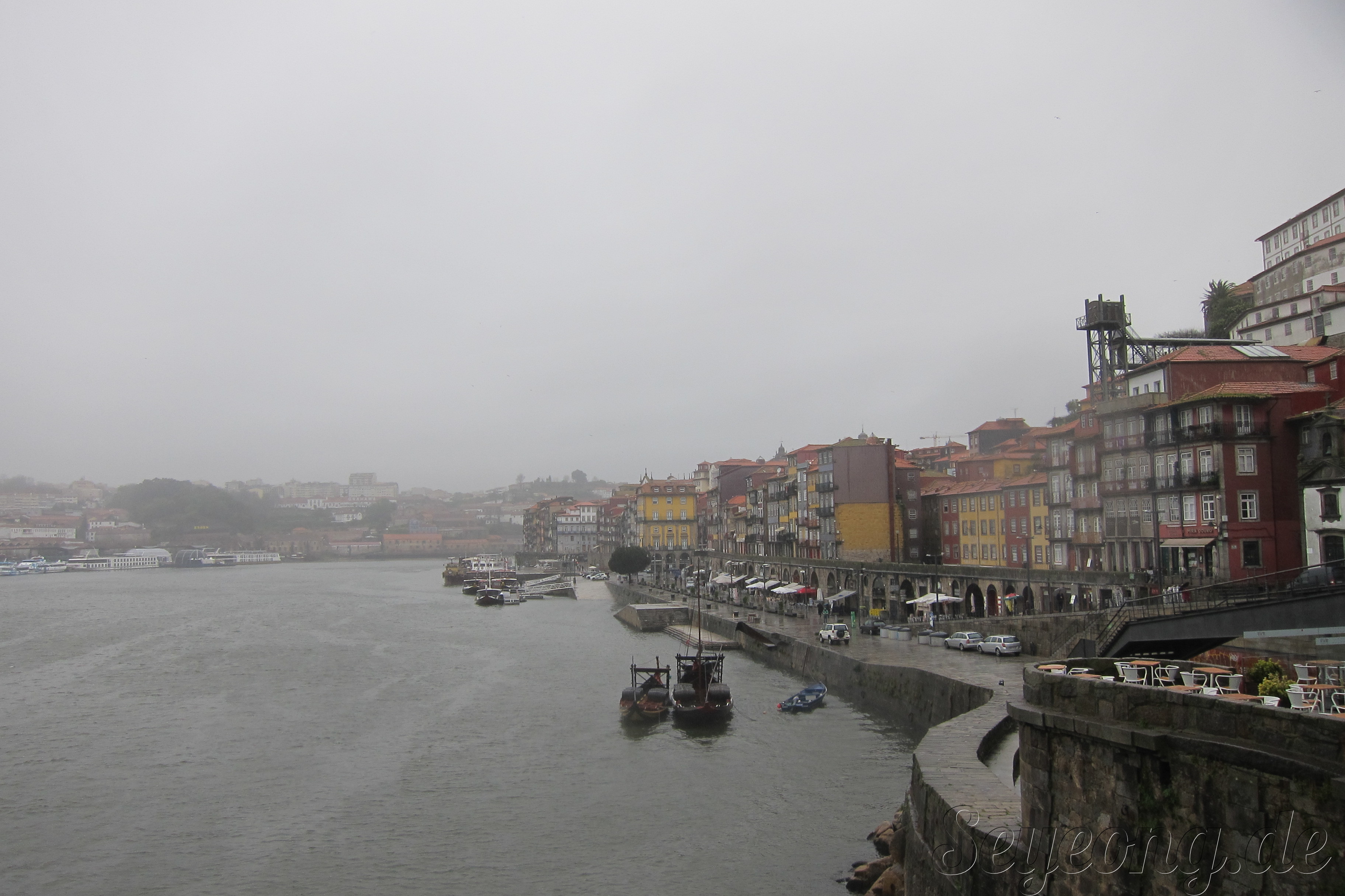 비가 와서 안개낀 포르또 강가.