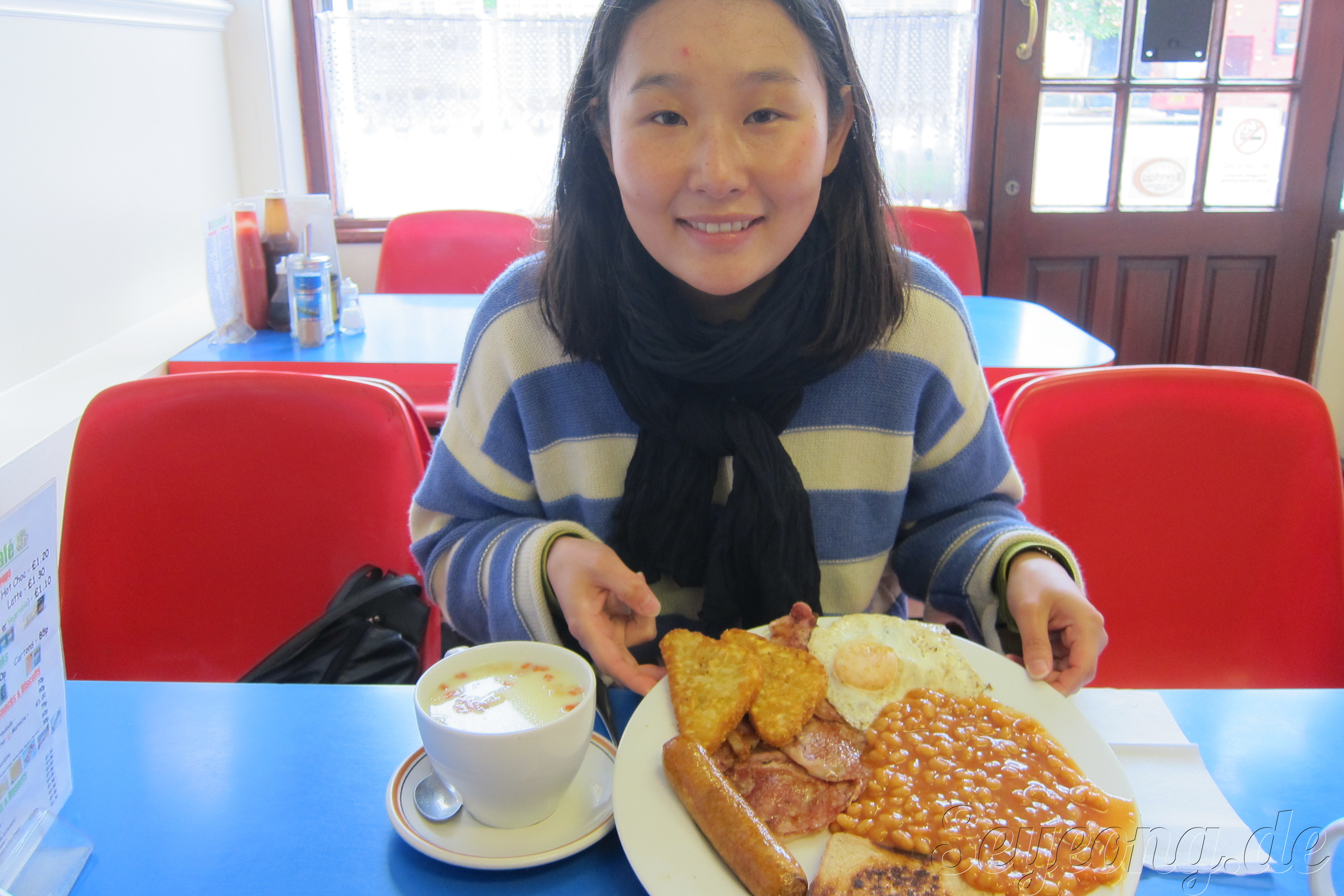 영국에 오면 빼놓을 수 없는 영국식 아침 식사. 참 조화가 대단하다.