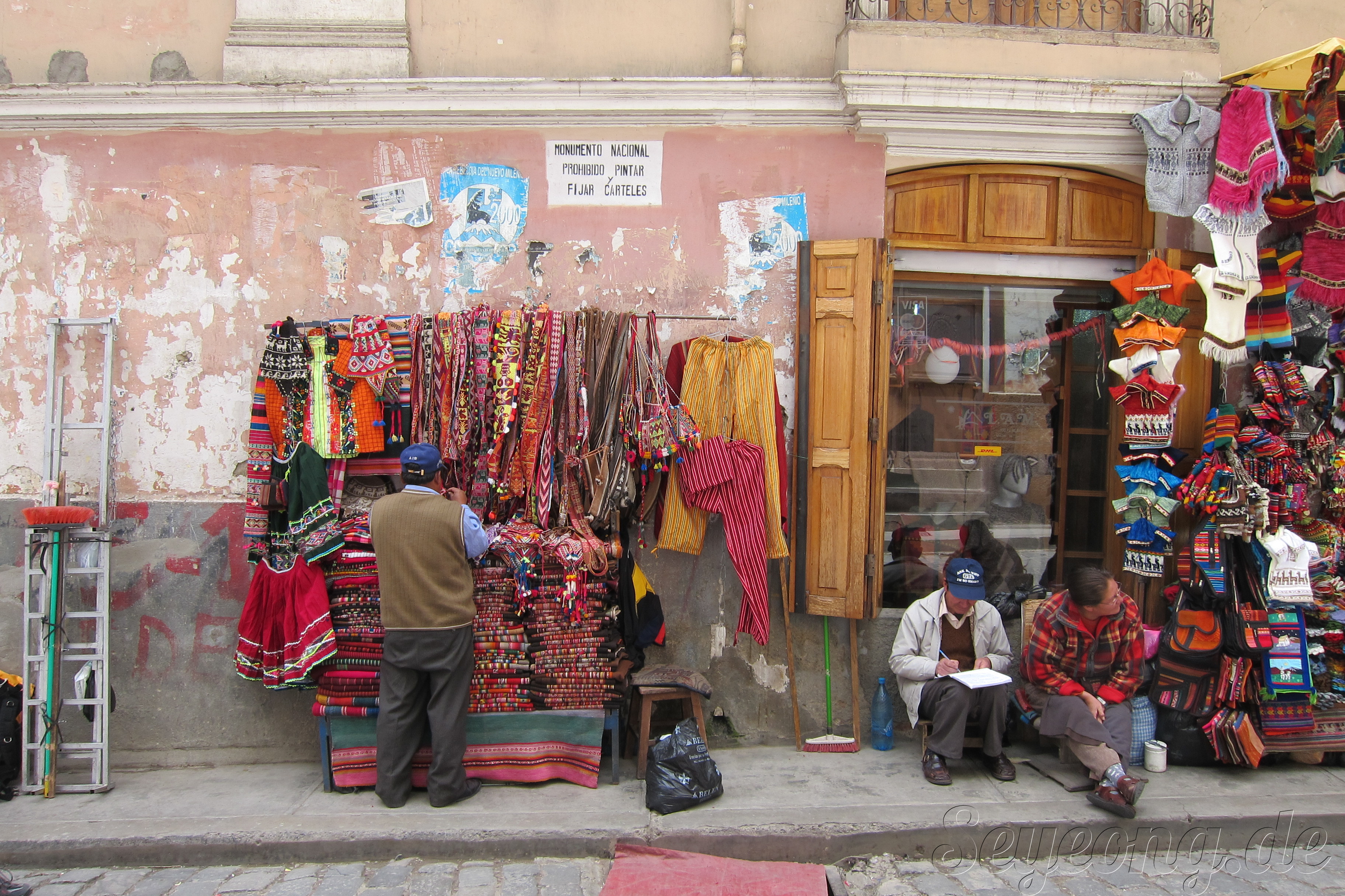 이곳에서 파는 물건들은 대부분 관광객들을 위한 것이다. 색색 형형의 볼리비아 스타일의 가방과 옷들.