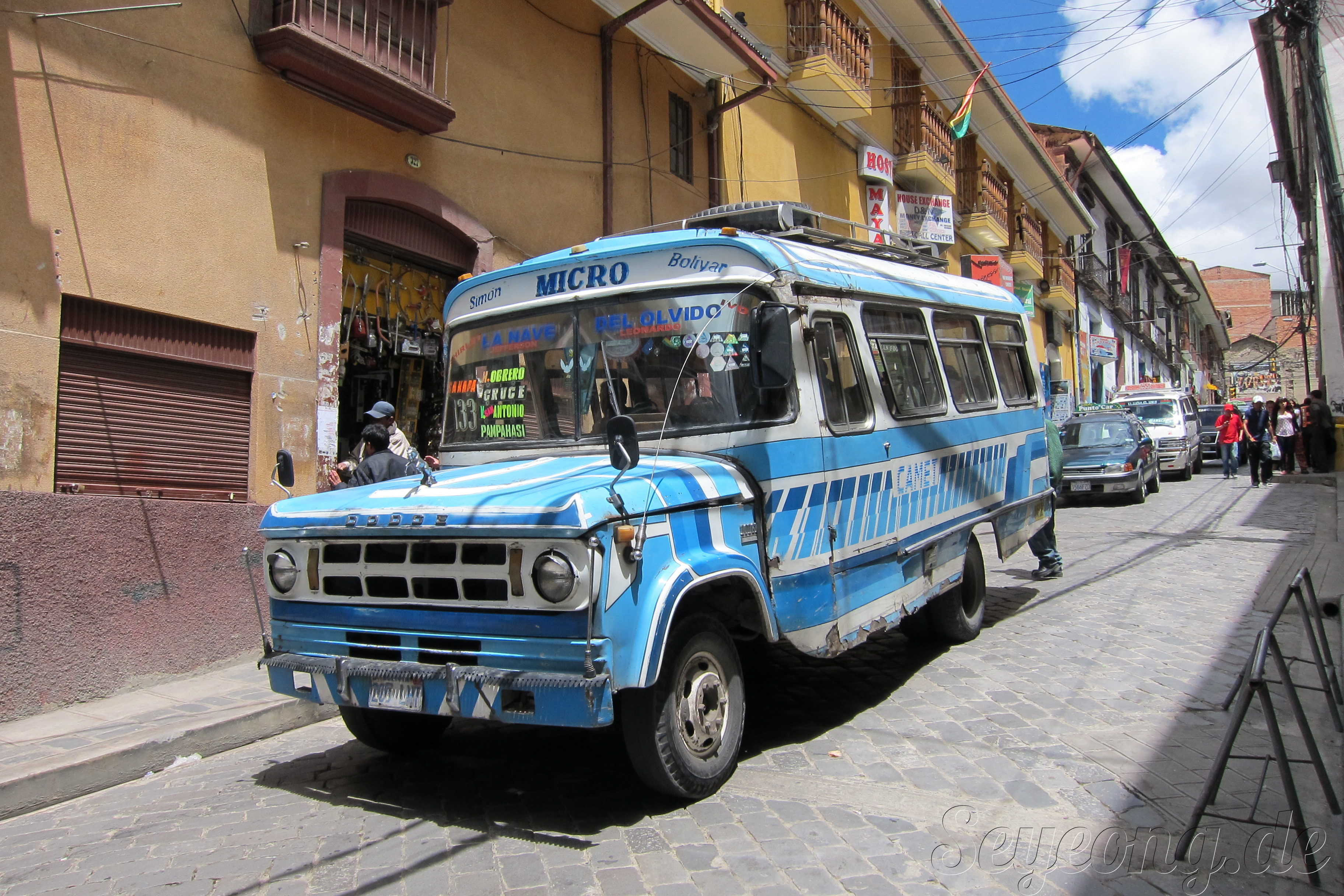 이러한 언덕으로 인해 볼리비아의 대중수단은 작은 미니 버스이다. 특별히 정차장이 없기에 버스에 적힌 방향과 맞으면 그냥 버스를 타고 금액을 지불하면 된다.