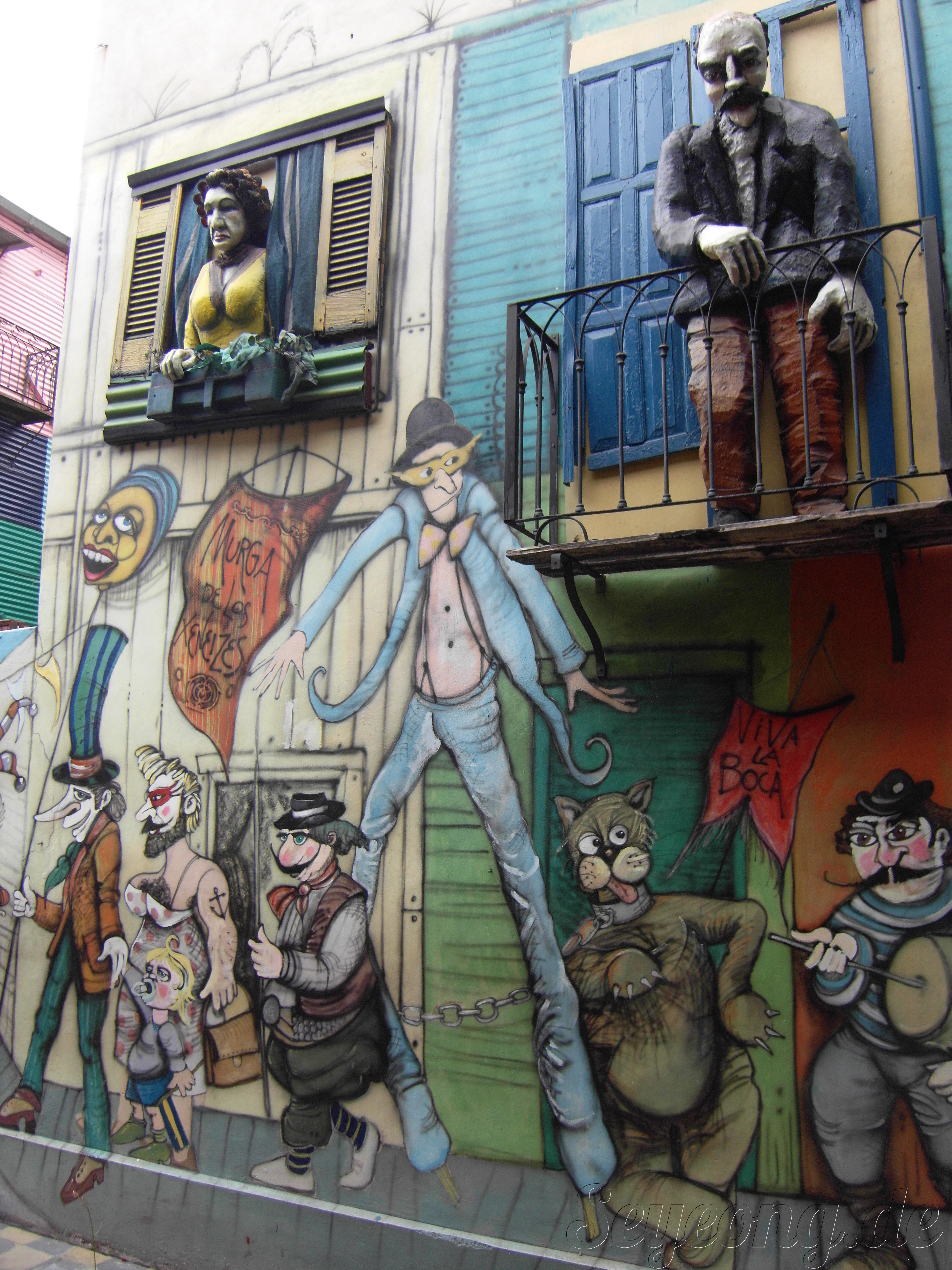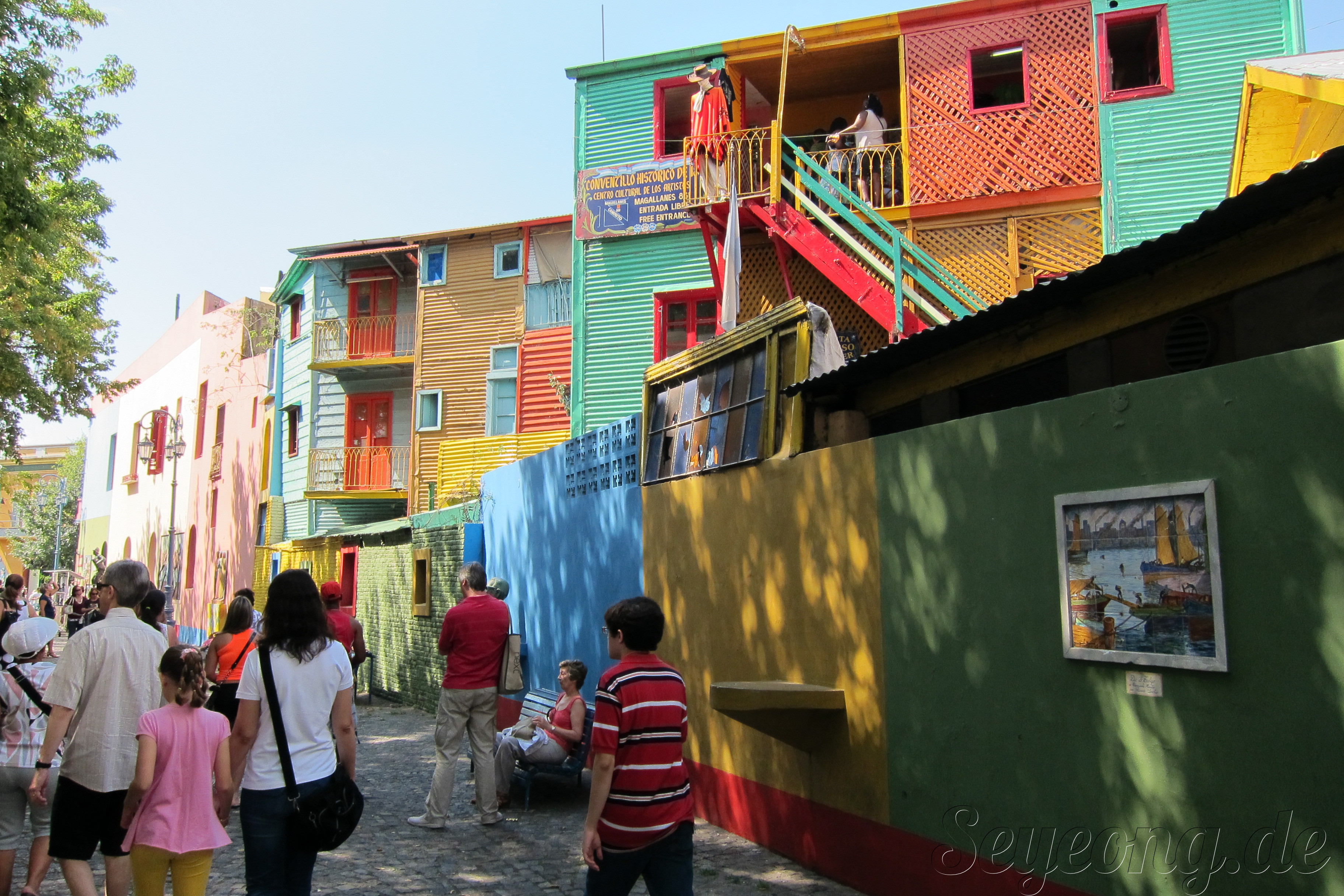 이 곳의 대담한 원색으로 칠한 이 아이디어는 보카 태생의 화가 킨케라 마르틴이 창조한 것이다.