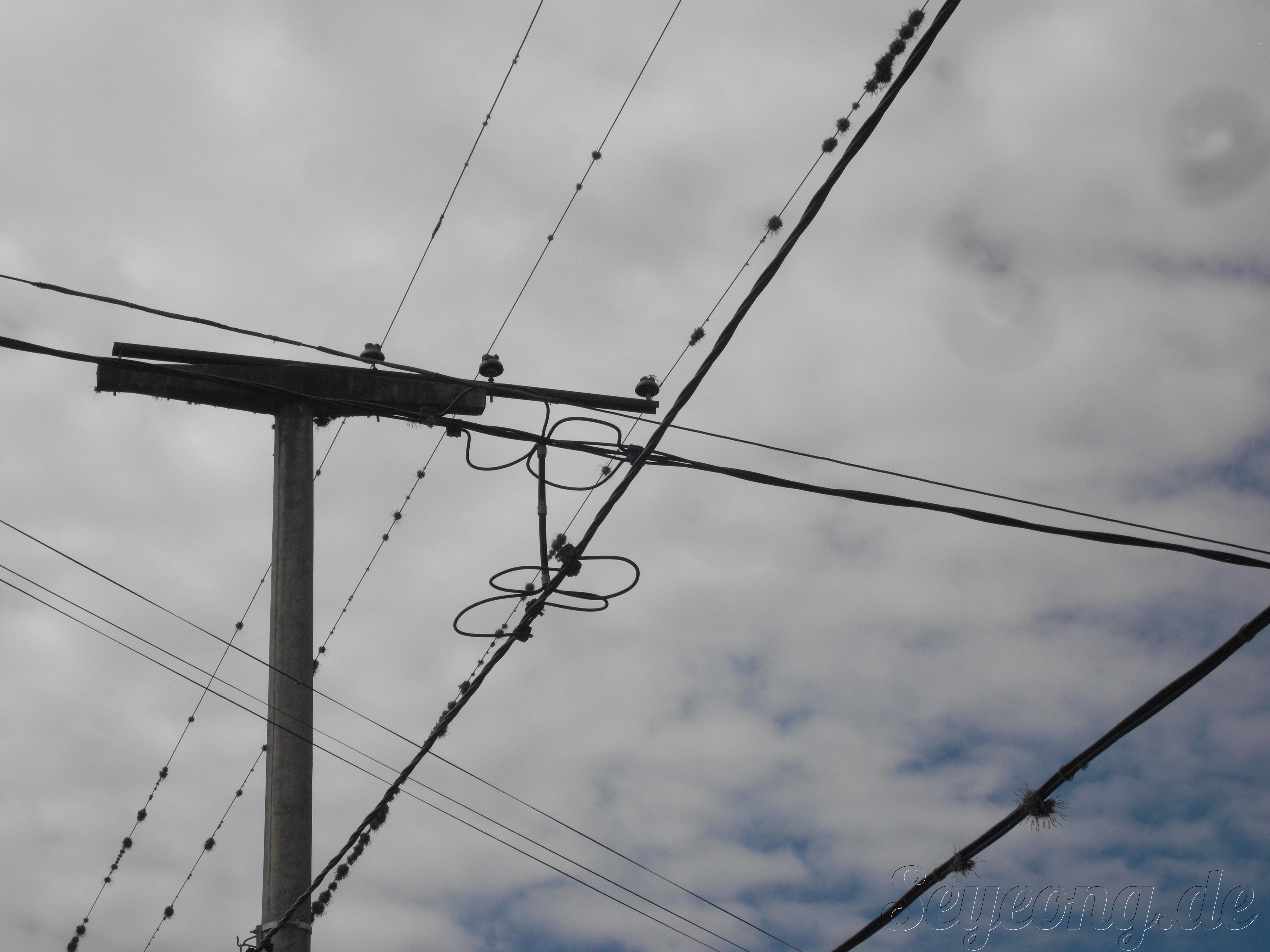 전선들에는 가끔씩 성게?같이 생긴 동물? 식물? 이 자라고 있다. 전기는 잘 통하는지 궁금할 따름.