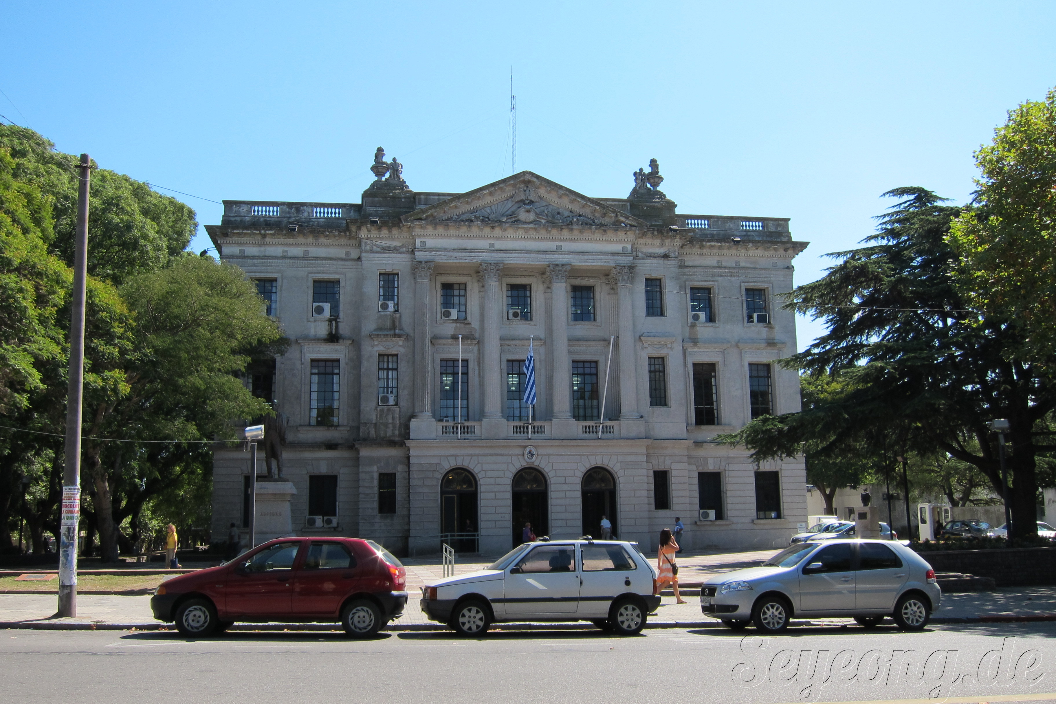 식민지 시대풍의 건물, 아마도 우루과이 국기가 달린 것을 보니 시청이지 싶다.
