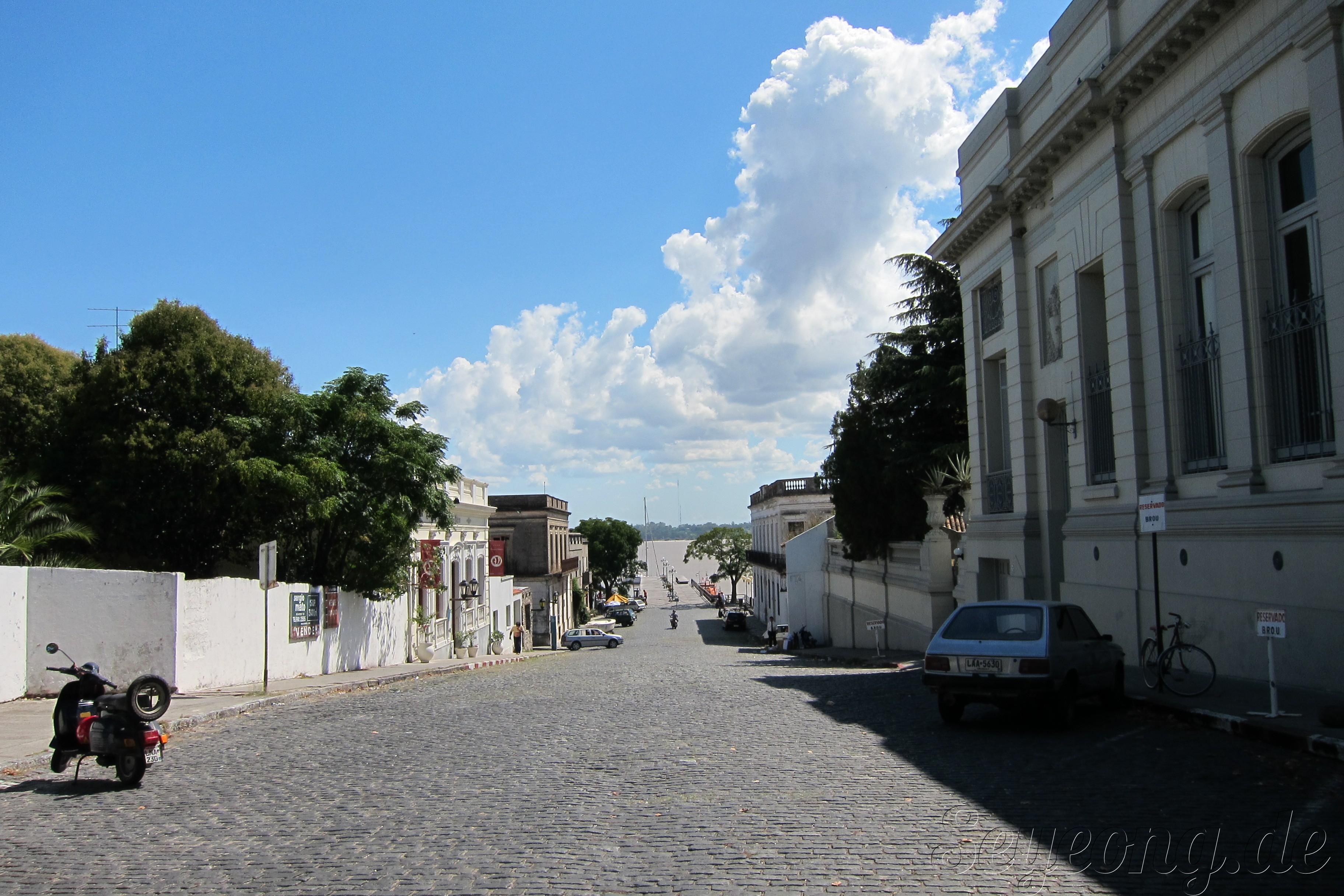 세계문화유산지구로 지정된 콜로니아의 자갈이 깔려진 도로는 평화로운 휴양지 느낌의 이곳을 돋보이게 한다.