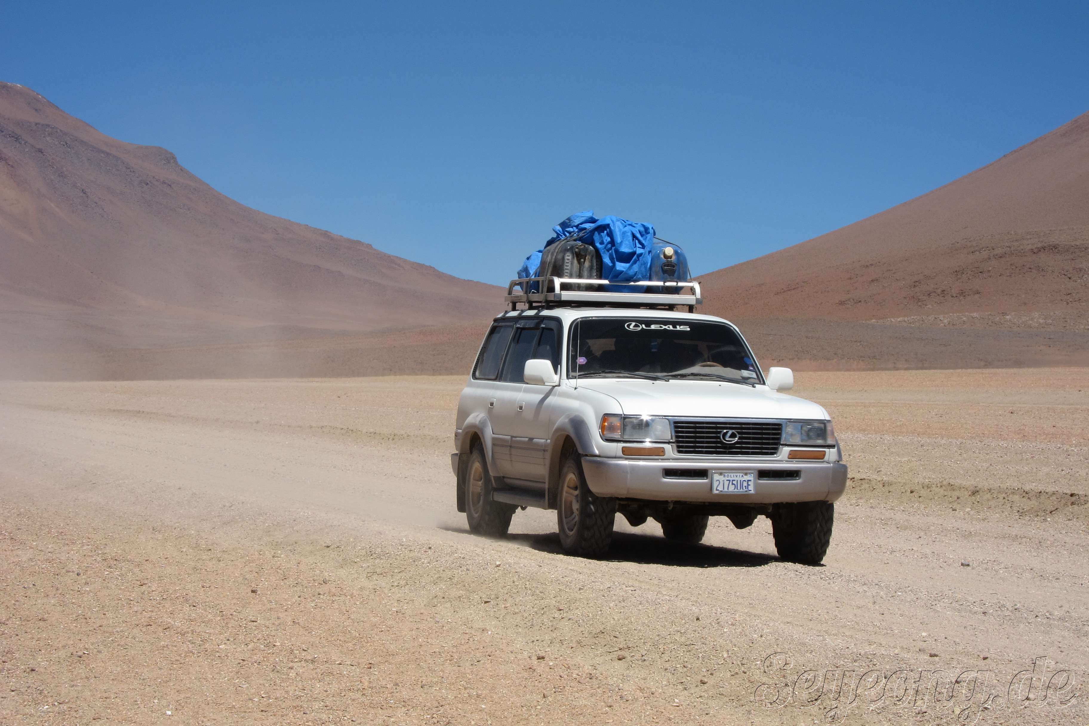 4000-5000m 높이의 고지대 사막이기에 짚차로만 이동이 가능하다. 특별히 길이 있는 건 아니지만, 이미 많은 여행자들의 이동 통로로 여행 길이 마련되어 있다. 그리고 이동 중의 음식은 중간 중간 짚차 운전자가 음식을 만들거나 준비하고, 자는 곳은 사막의 작은 마을의 집을 이용하게 된다.