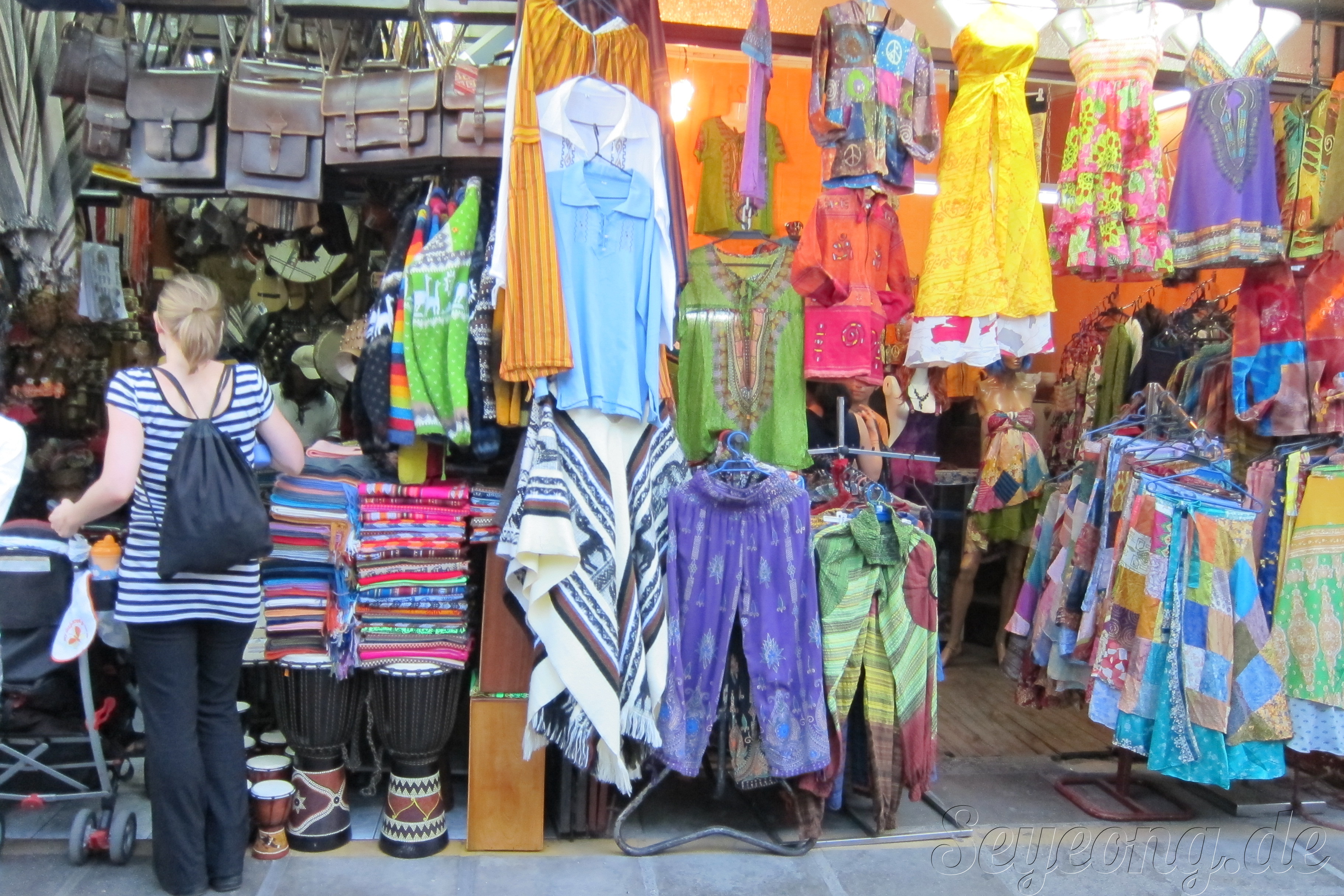 칠레의 다양한 염색 공예 제품 옷들