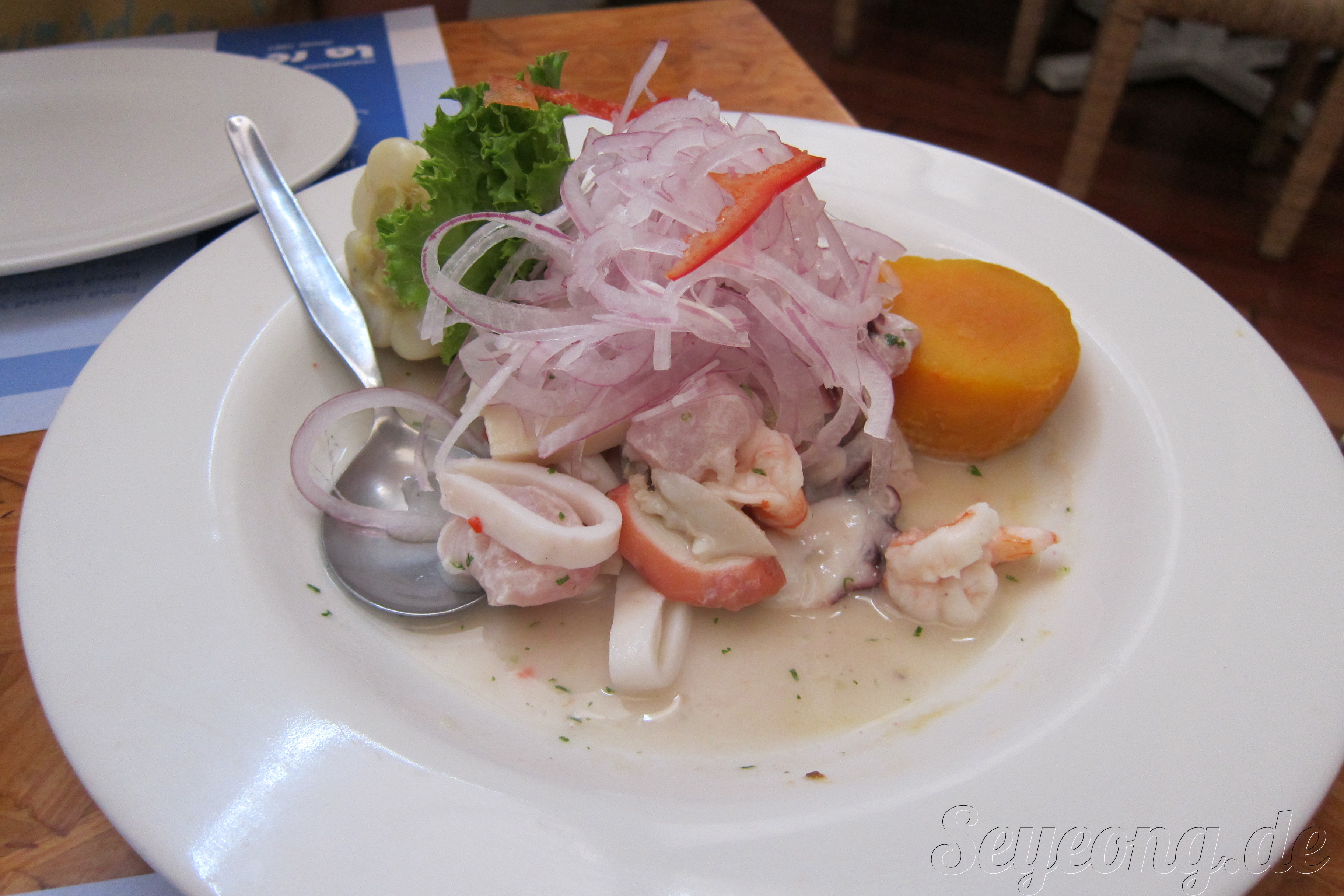 페루를 대표하는 음식 Ceviche. 리마에서는 체비체를 전문적으로 하는 여러 레스토랑이 있다. 특히 방송을 탈 정도로 유명한 La Red 레스토랑을 방문하였다.