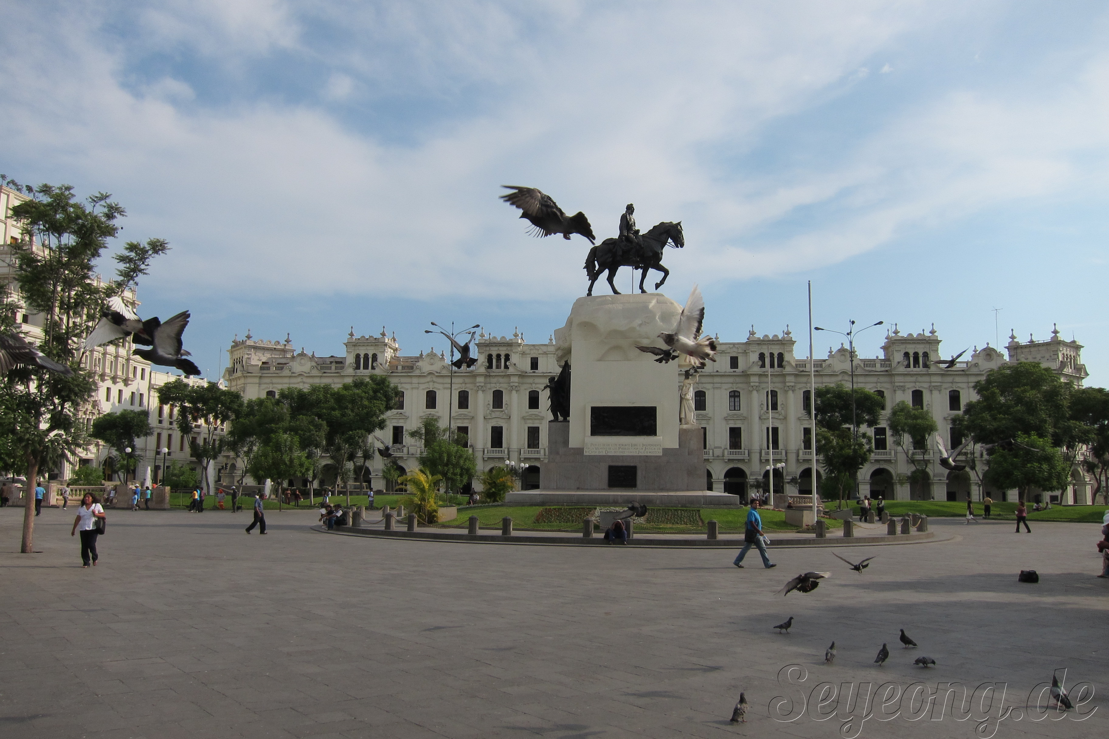 시장과 교회 광장이 모여 있는 리마의 중심 Plaza San Martin.