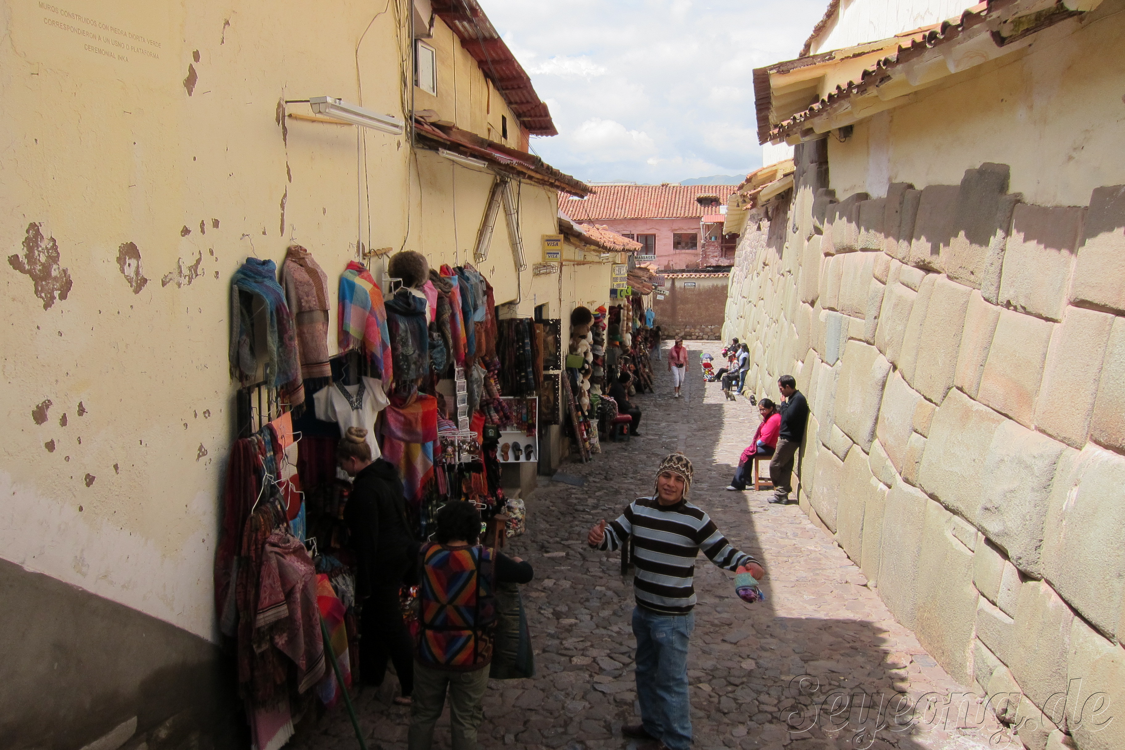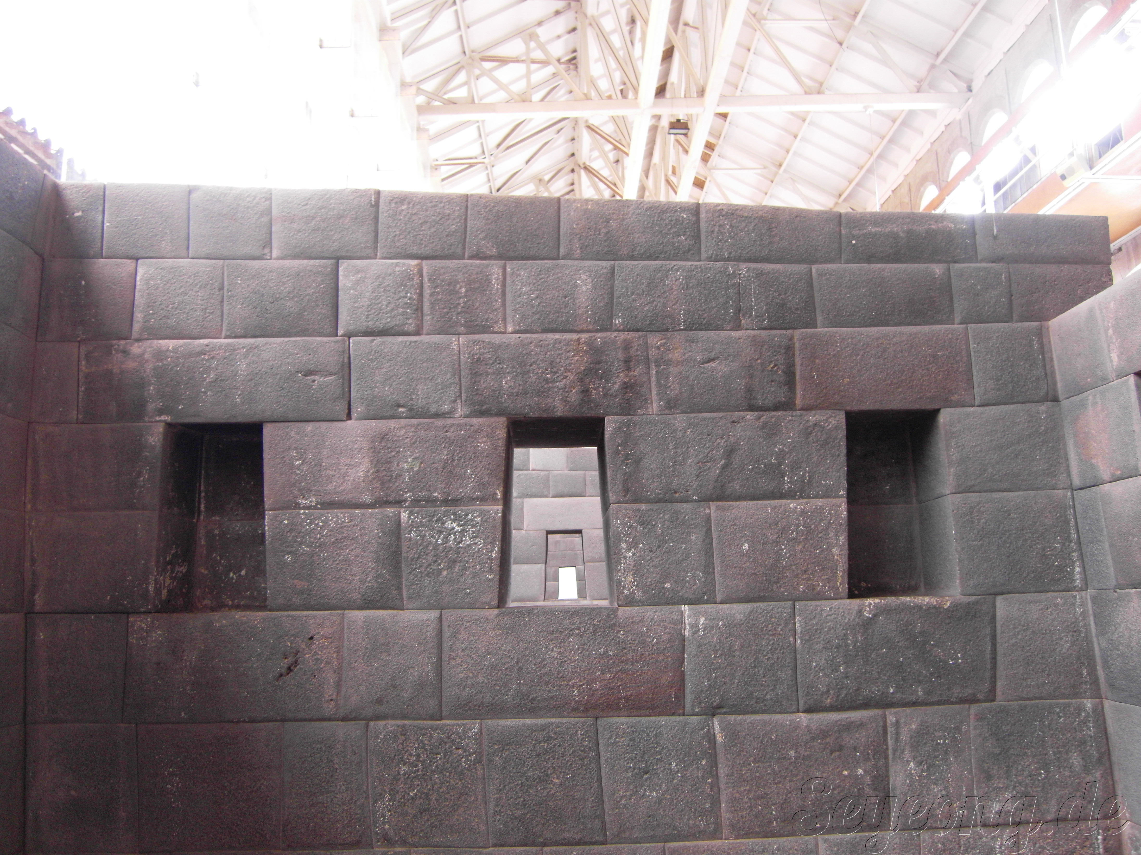 딱 맞는 돌을 어떻게 이렇게 잘 재단해서 정리하였는지. 한 때 지진이 크게 난 쿠스코에서는 잉카 건물 만이 멀쩡하게 무너지지 않고 견뎌내었다고 한다.