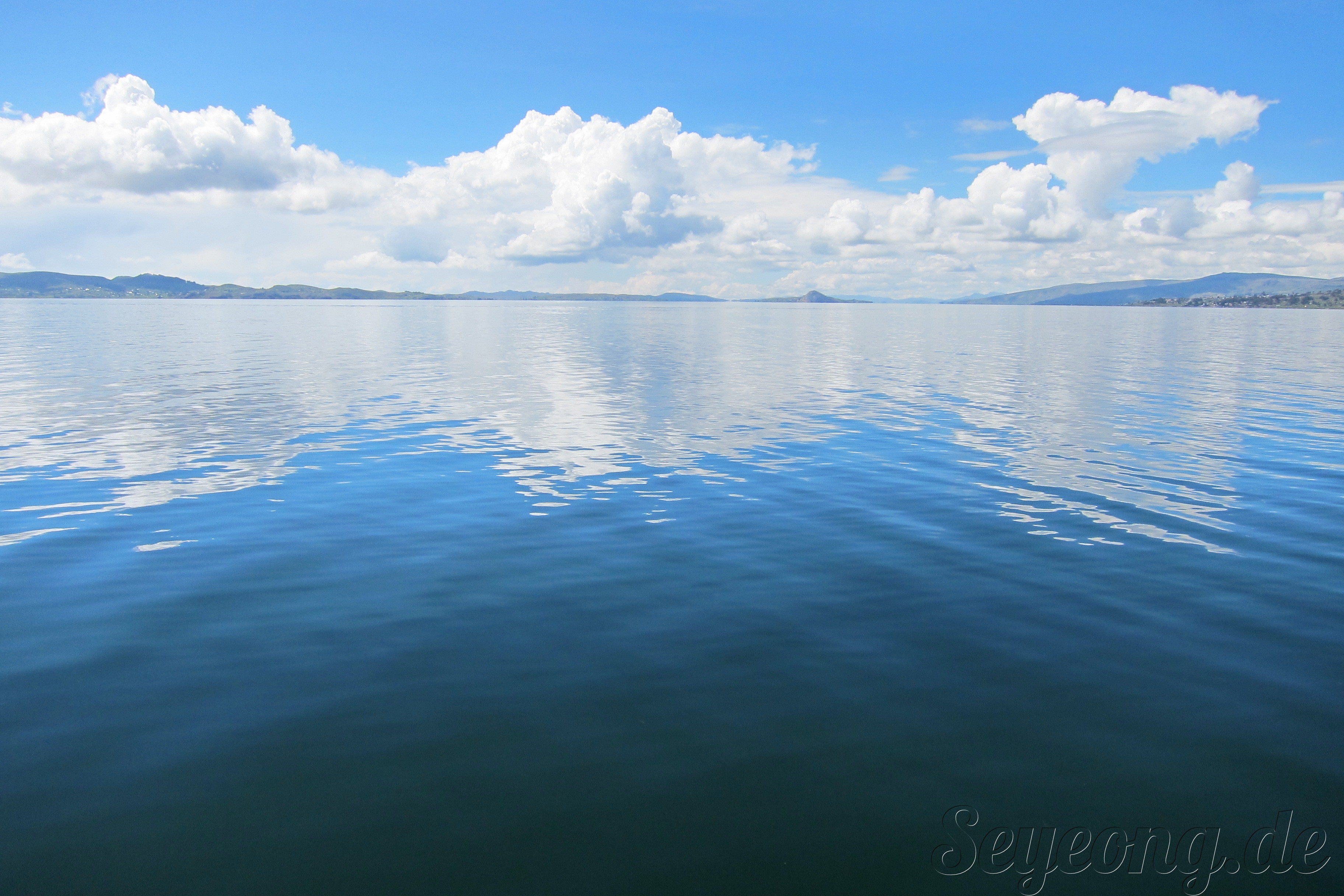 구름이 호수에 빠질 것만 같은 가까운 거리. 이 호수에서 우리의 단군 역사와 같은 페루의 역사가 시작되었다고 생각될 만큼 전설과 신비에 싸인 티티카카.