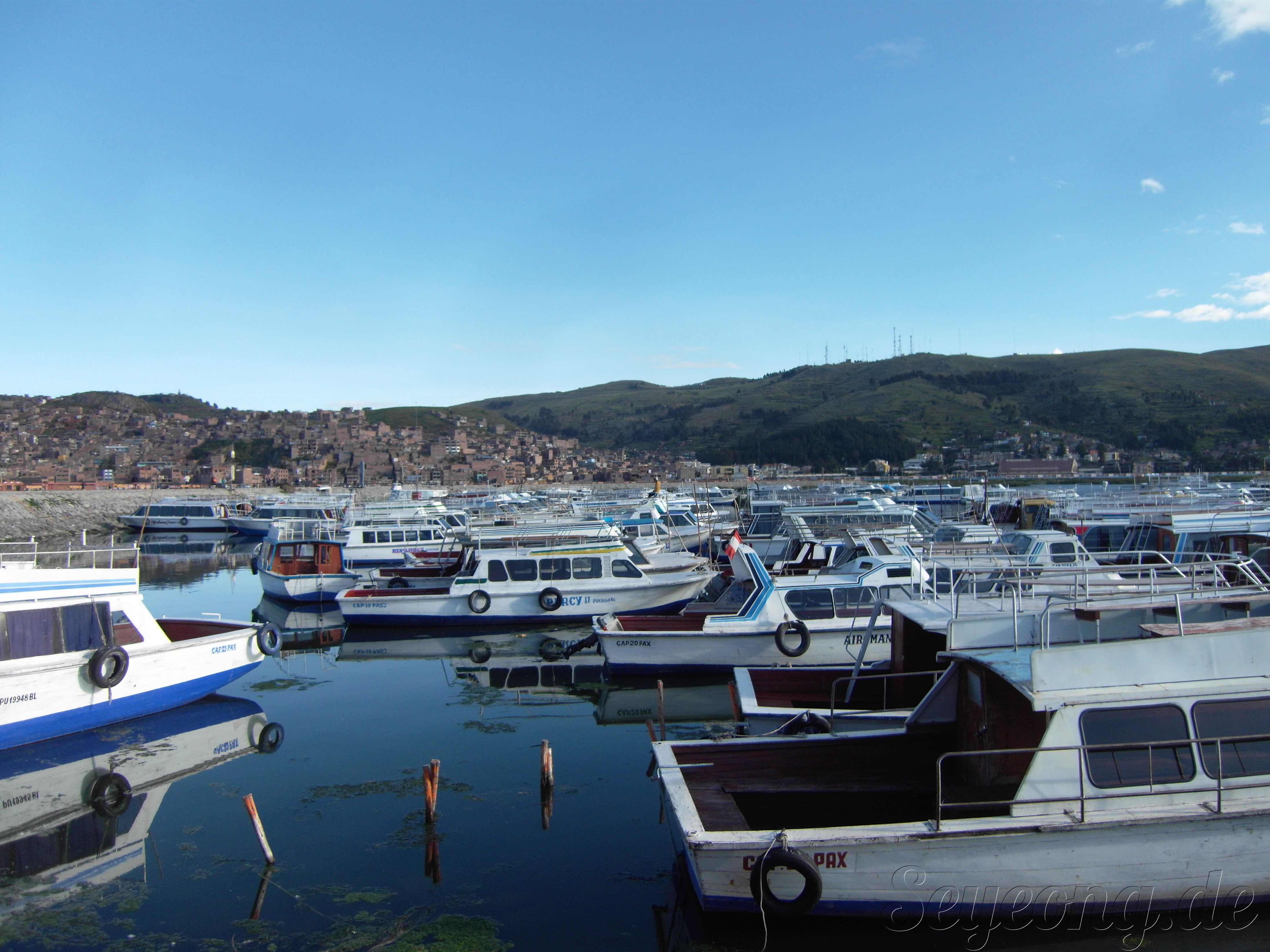 푸노 부두에 있는 많은 배들.