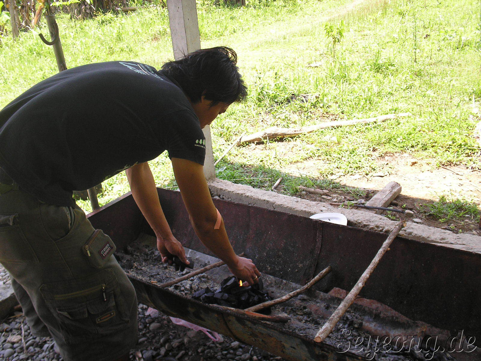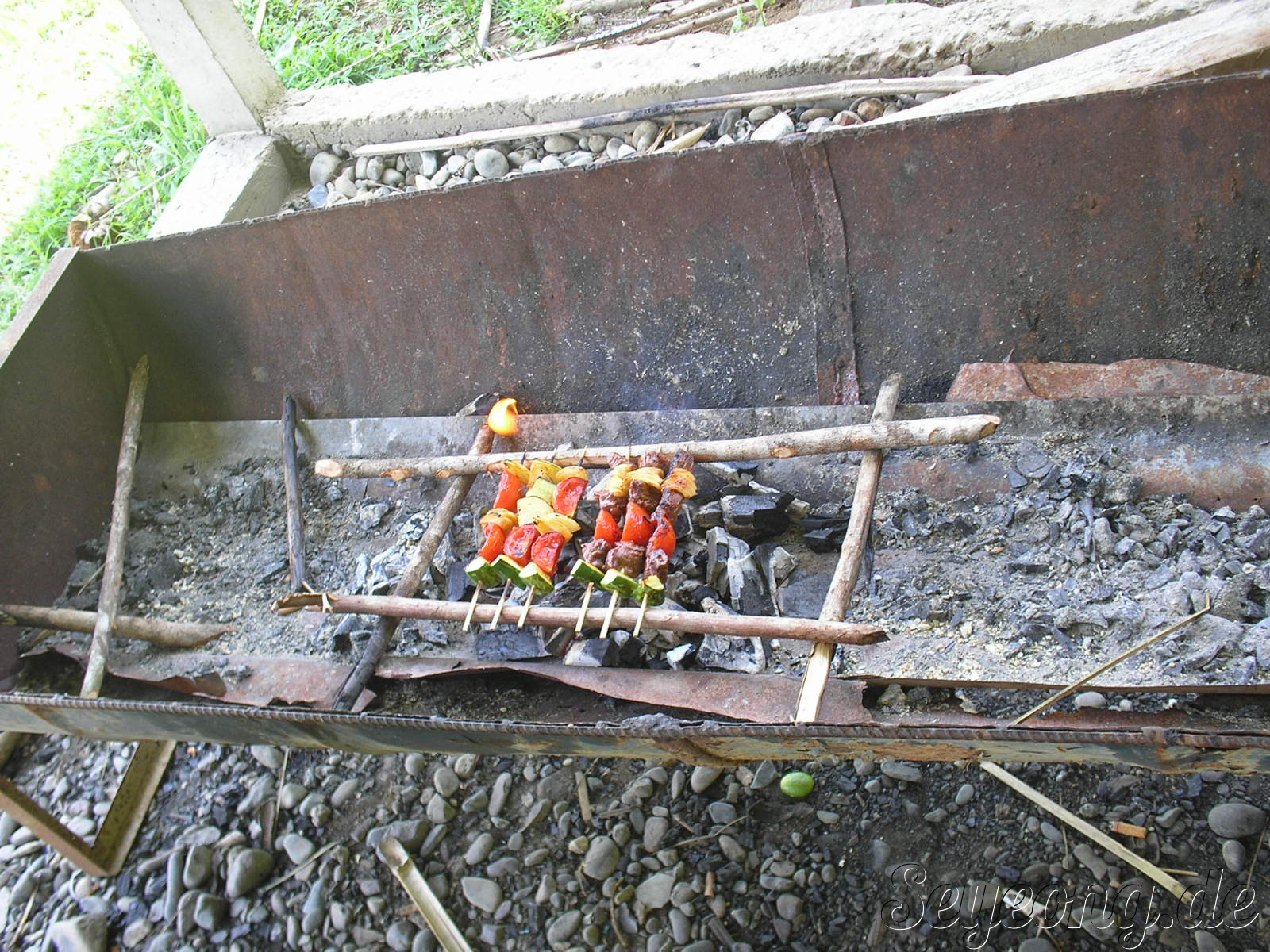 핸드 메이드 꼬치. 직접 장작불에 구어 먹는다.