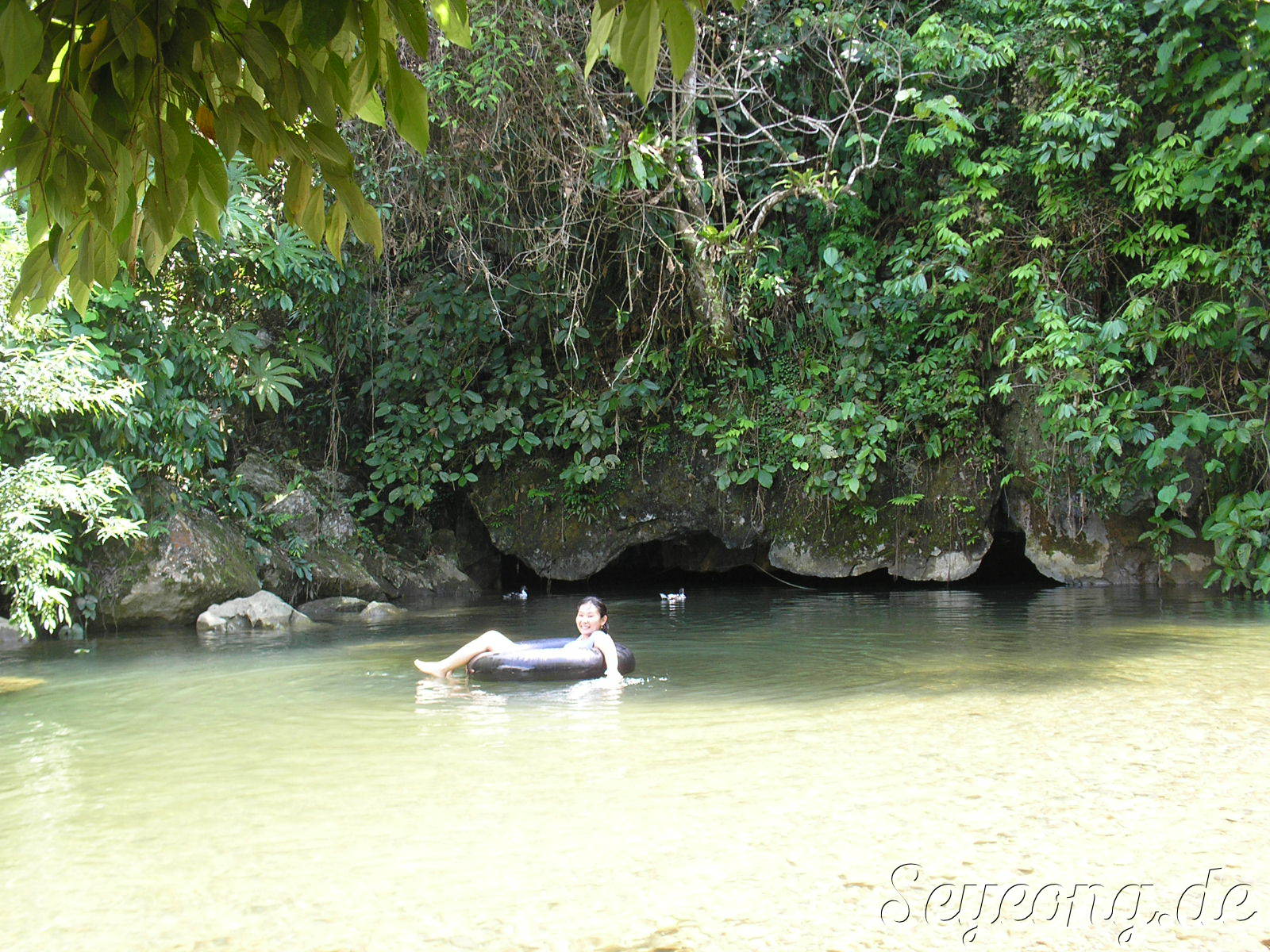 생각보다 긴 동굴에 끈을 잡고 튜브를 이동하는 물 동굴이라 상당히 무서웠다.