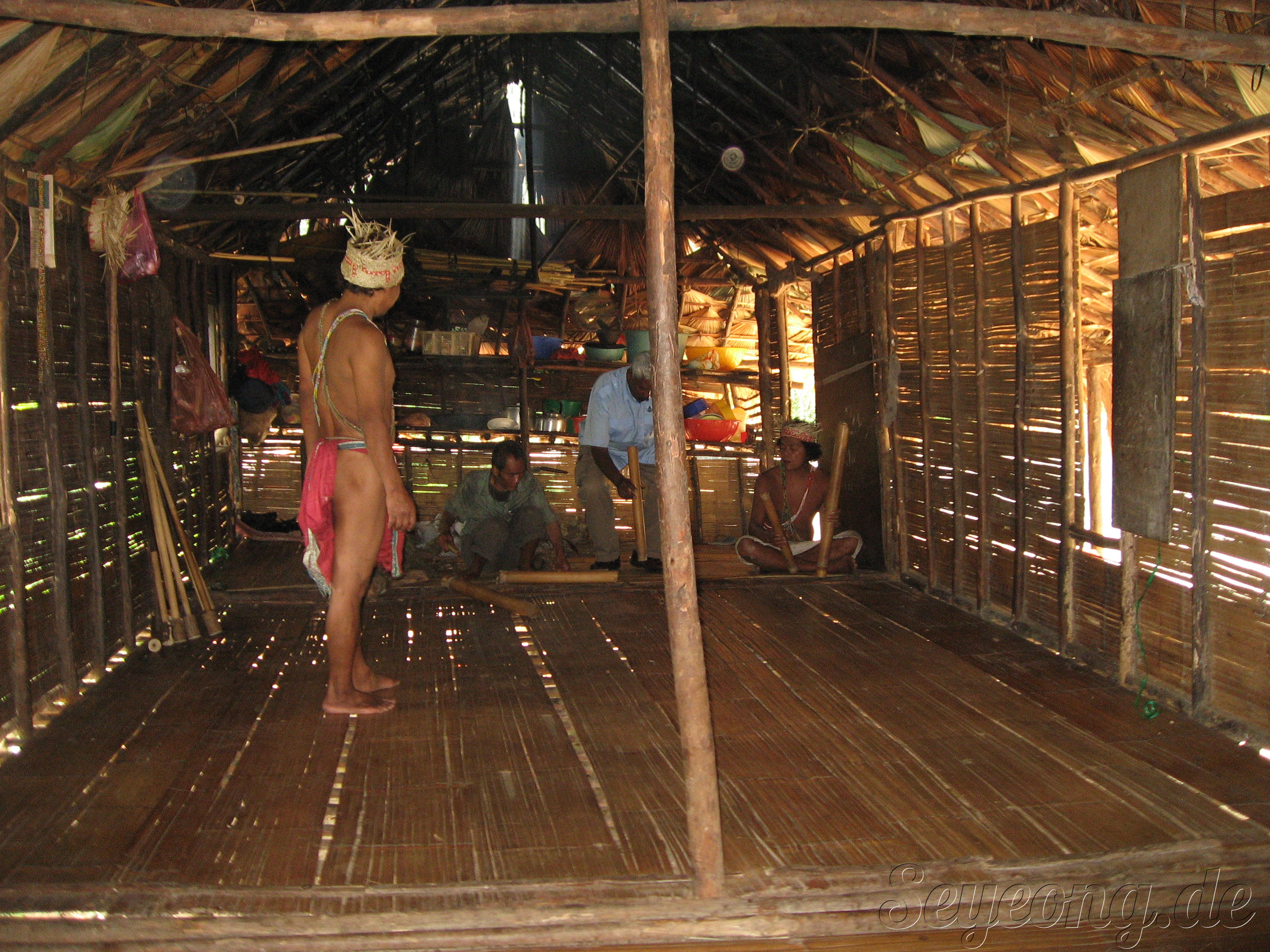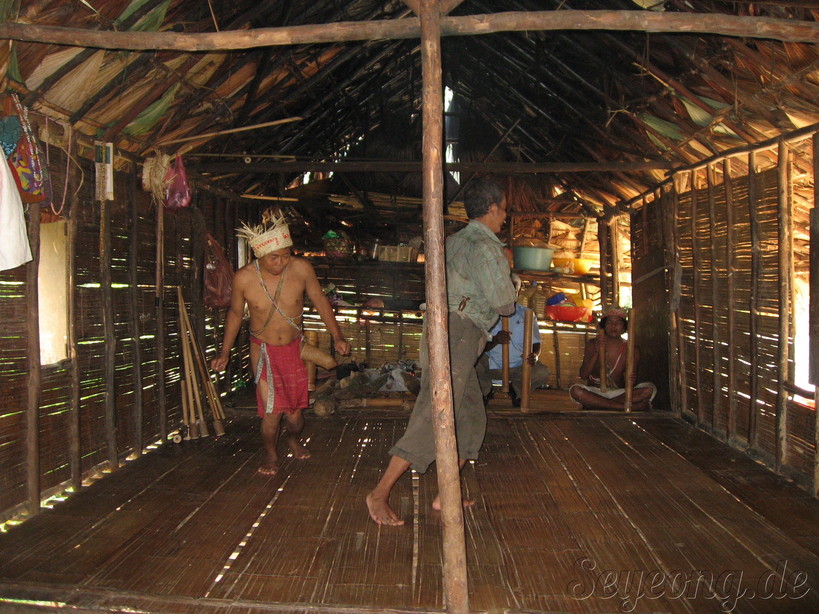 원주민의 혈통을 이어 받은 원주민 복장을 입고 그 당시 사람들의 사냥 하는 모습을 재현하였다. 독이 들어 있는 기다란 장대를 불어 새나 동물을 사냥하는 것이다.