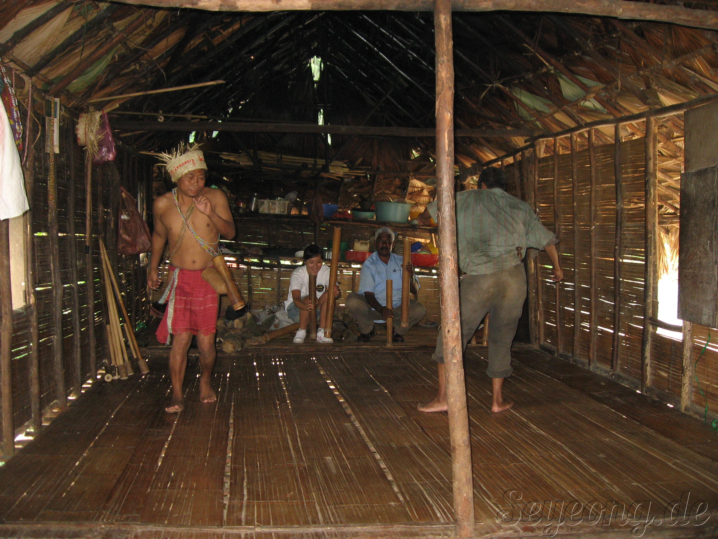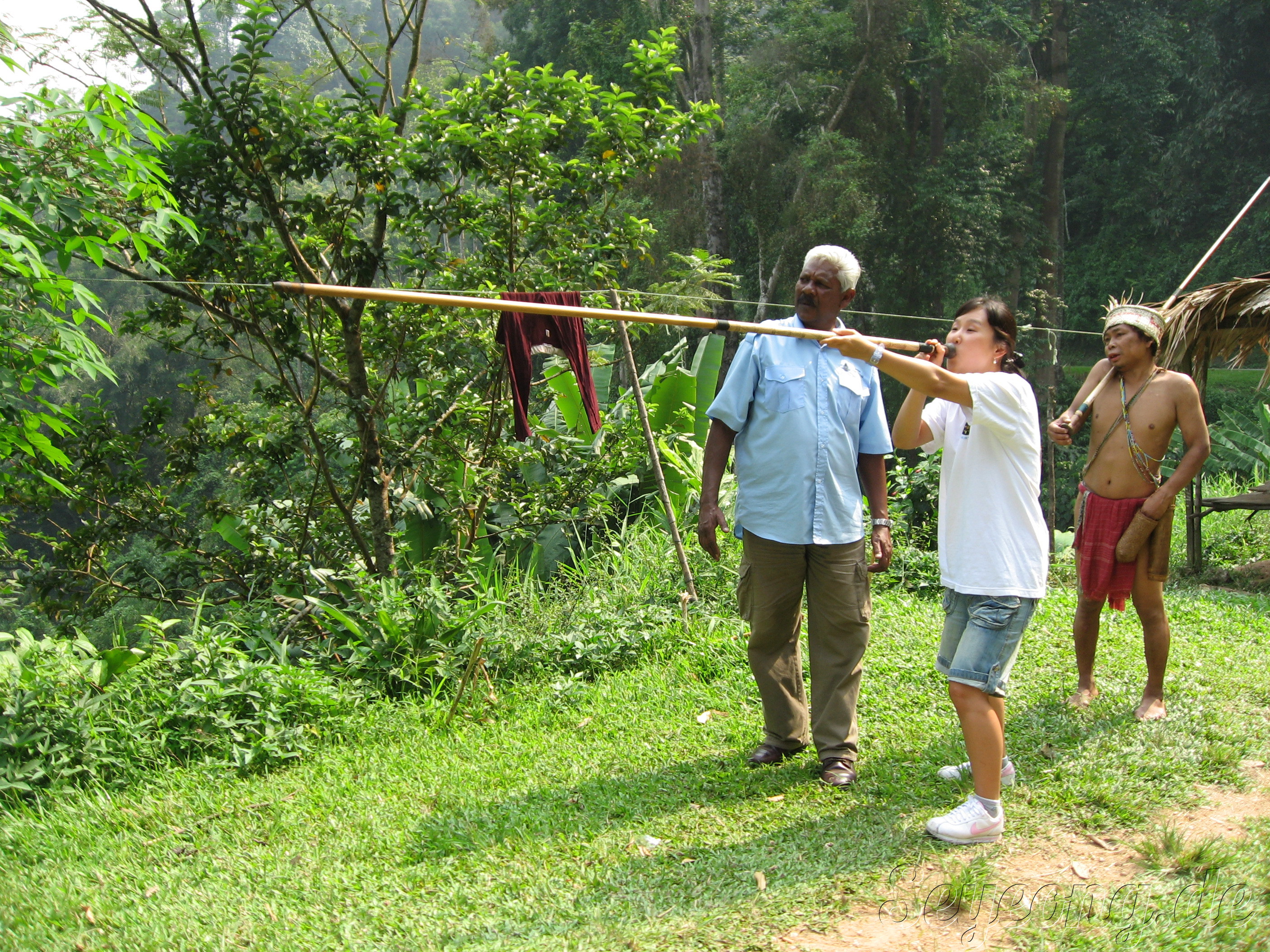 밖에 나와 직접 원주민이 사냥하는 장대를 불어보았다.