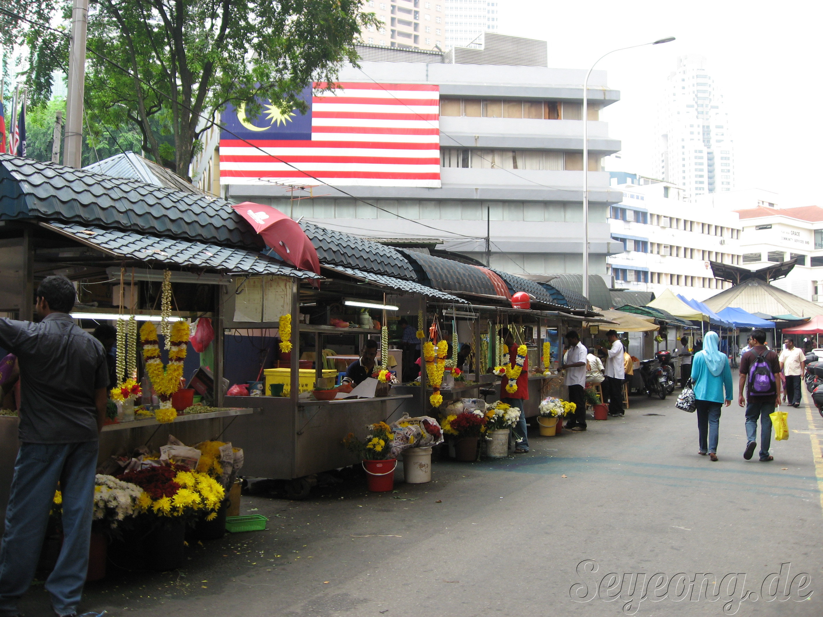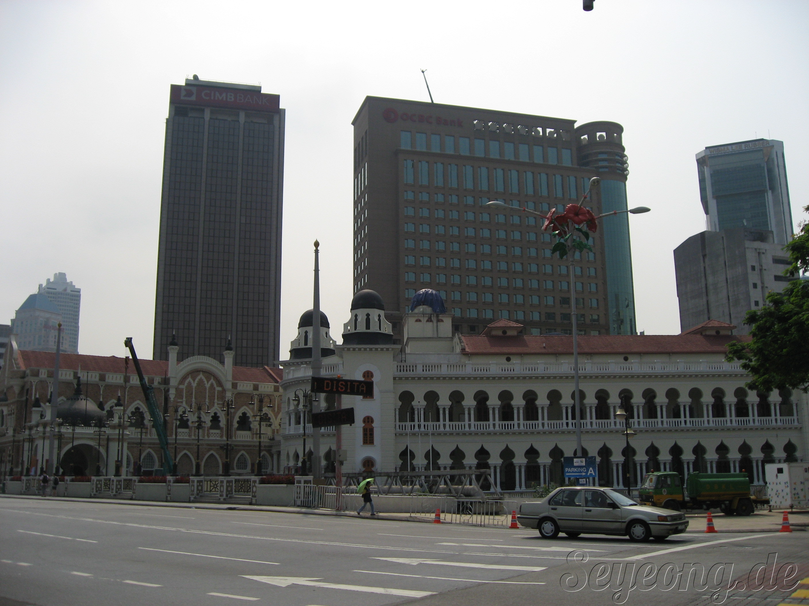 특이한 점으 가로등 마다 큰 꽃이 장식되어 있는데, 이는 말레이시아를 대표하는 꽃이라고.
