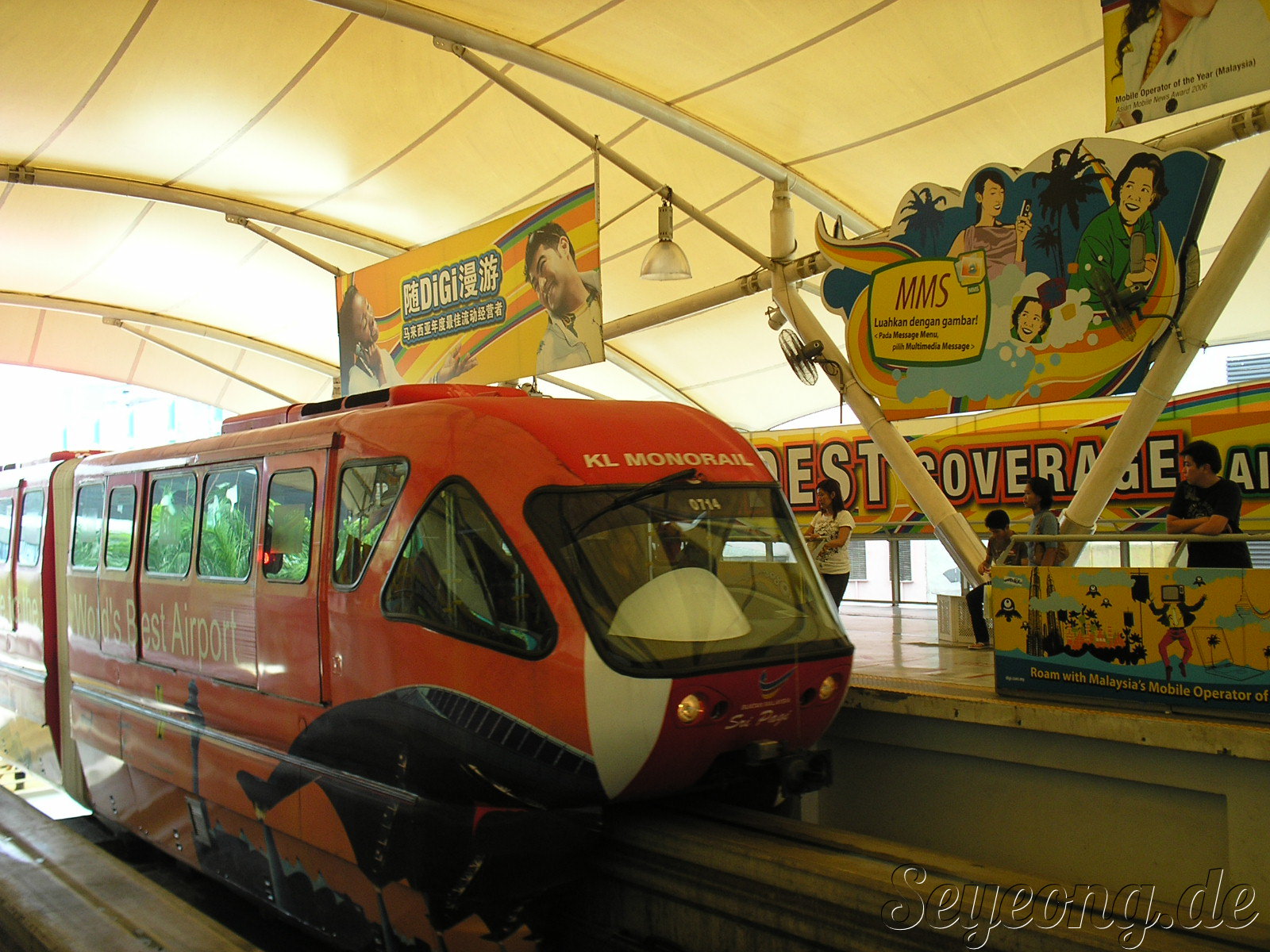 플라스틱으로 만들어진 코인을 사야만 모노레일을 탈 수 있다.