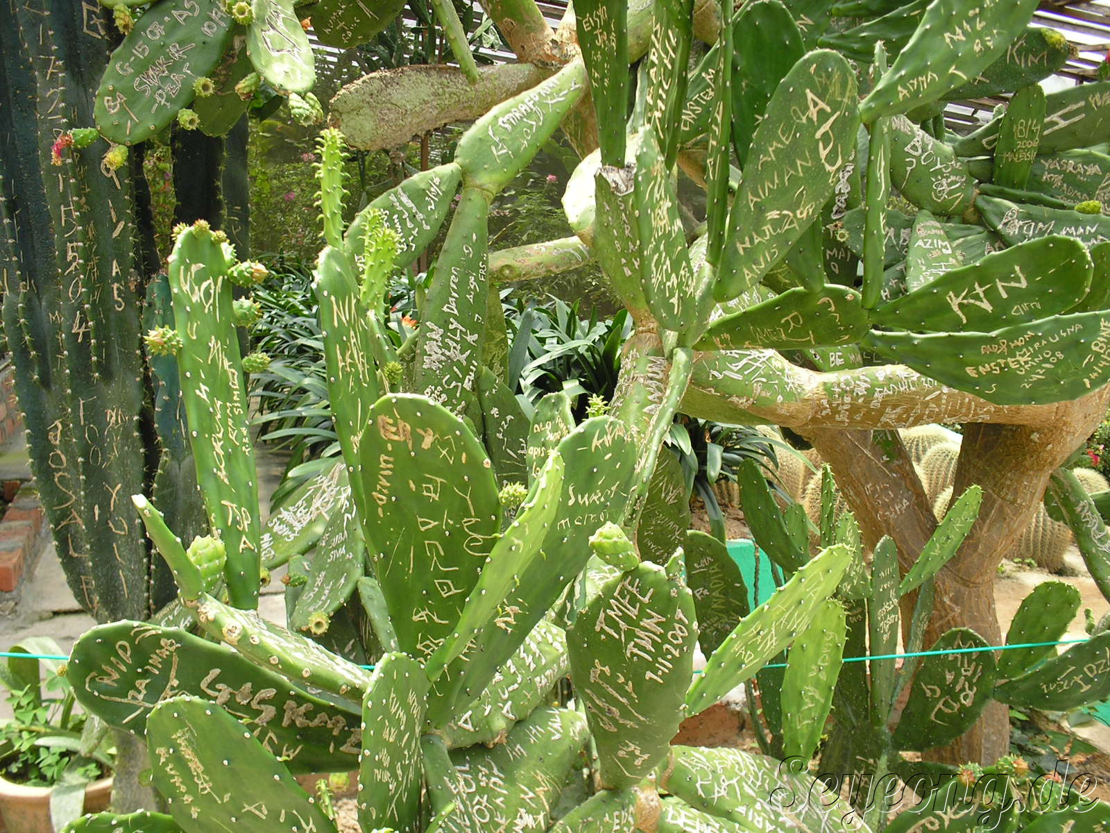 사람들이 선인장에 새겨 놓은 다양한 문구들.