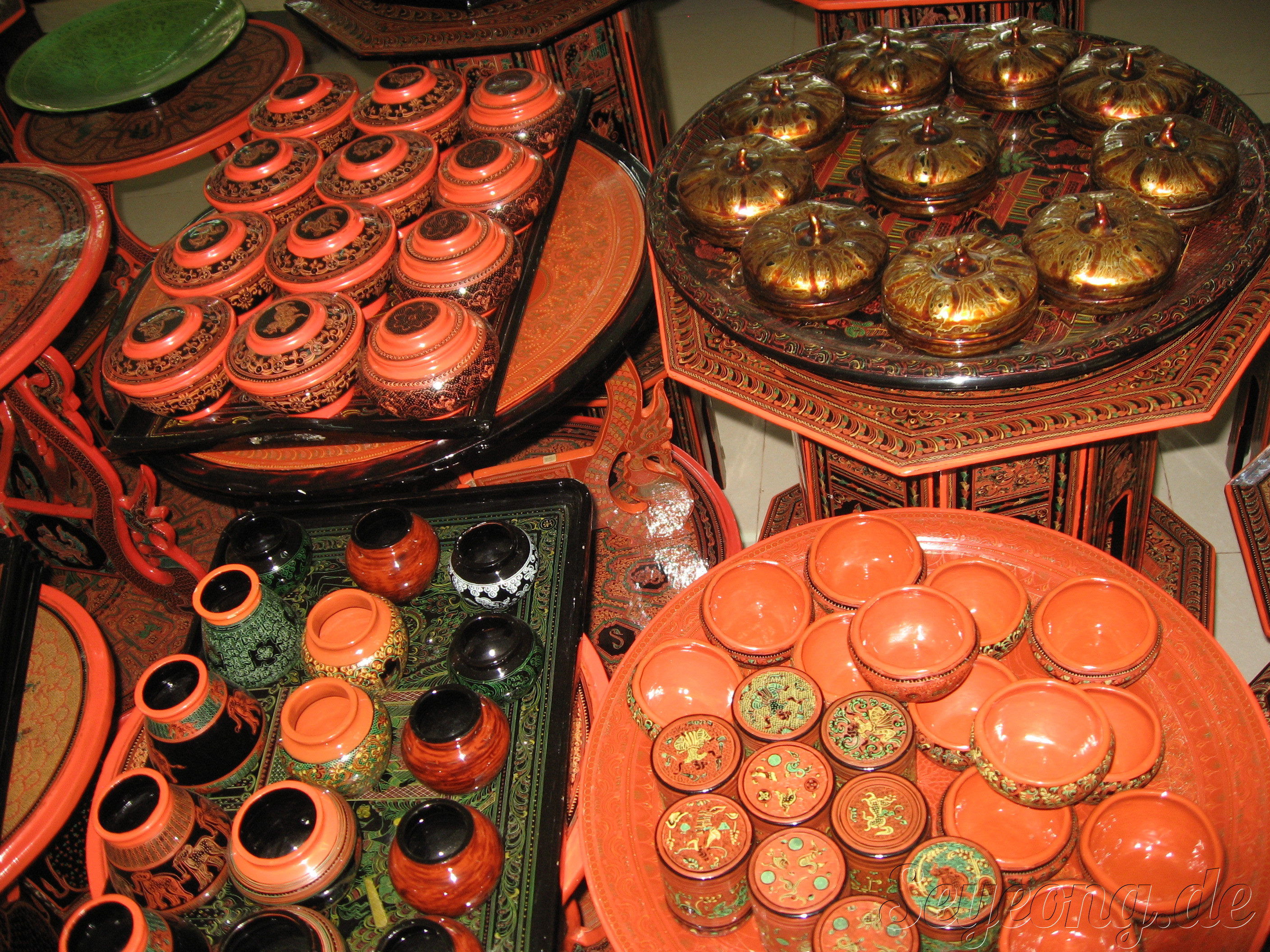 플라스틱 같아 보이는 이 모든 것이 나무로 수백번 옻칠을 향해 만든 가구들이다.