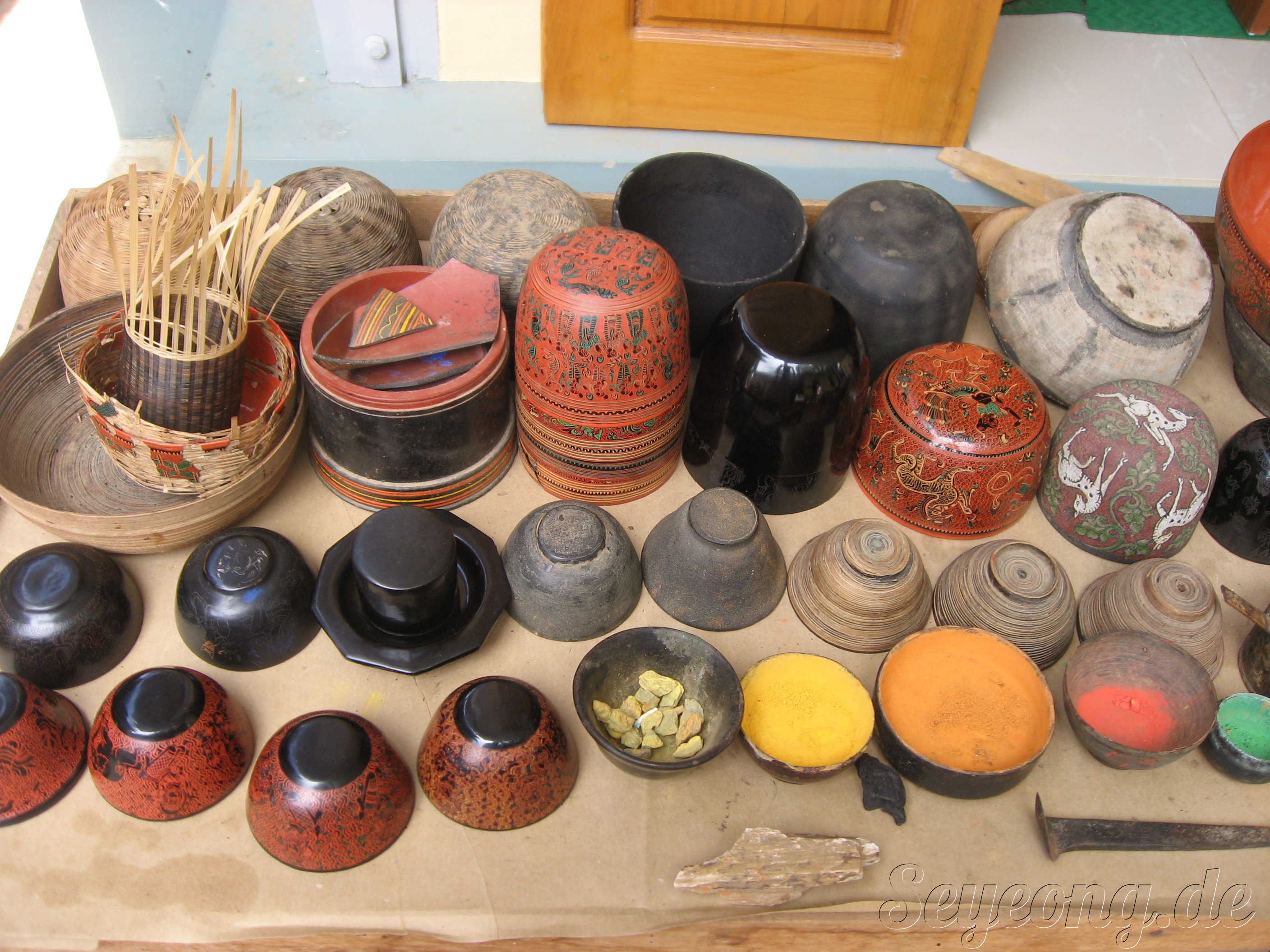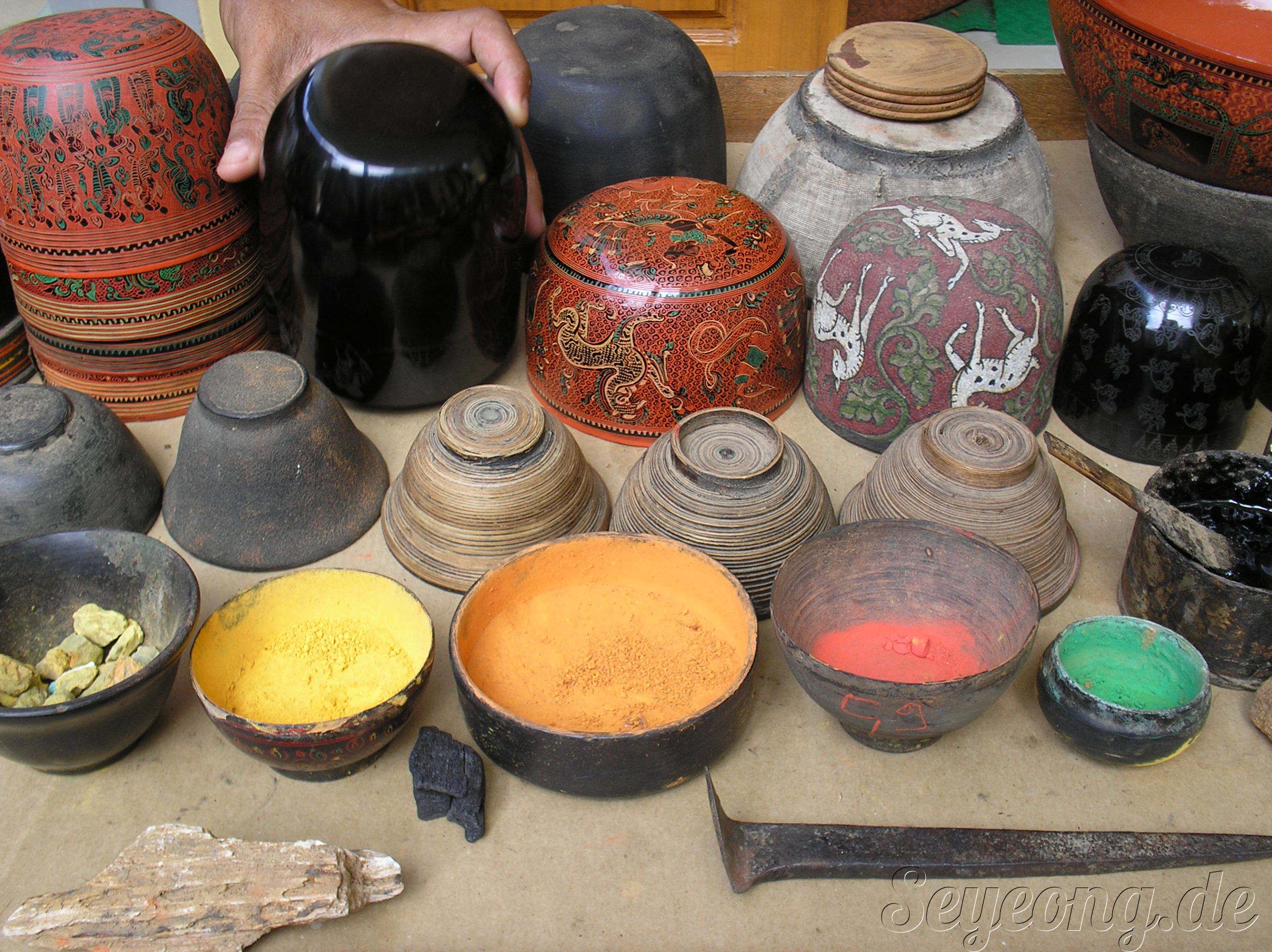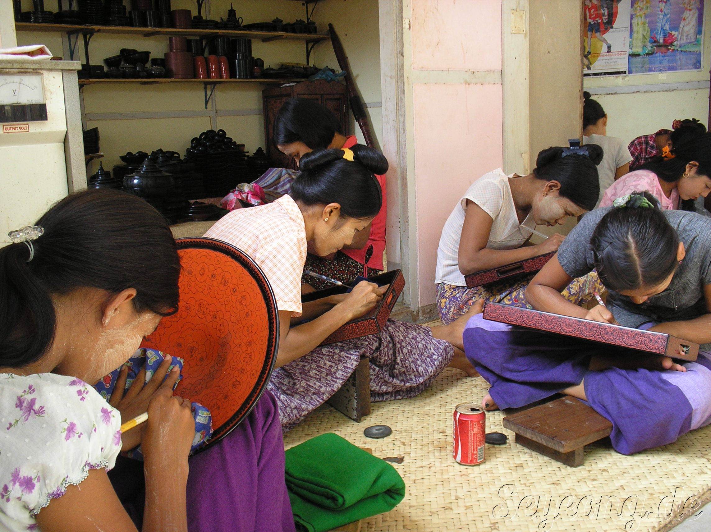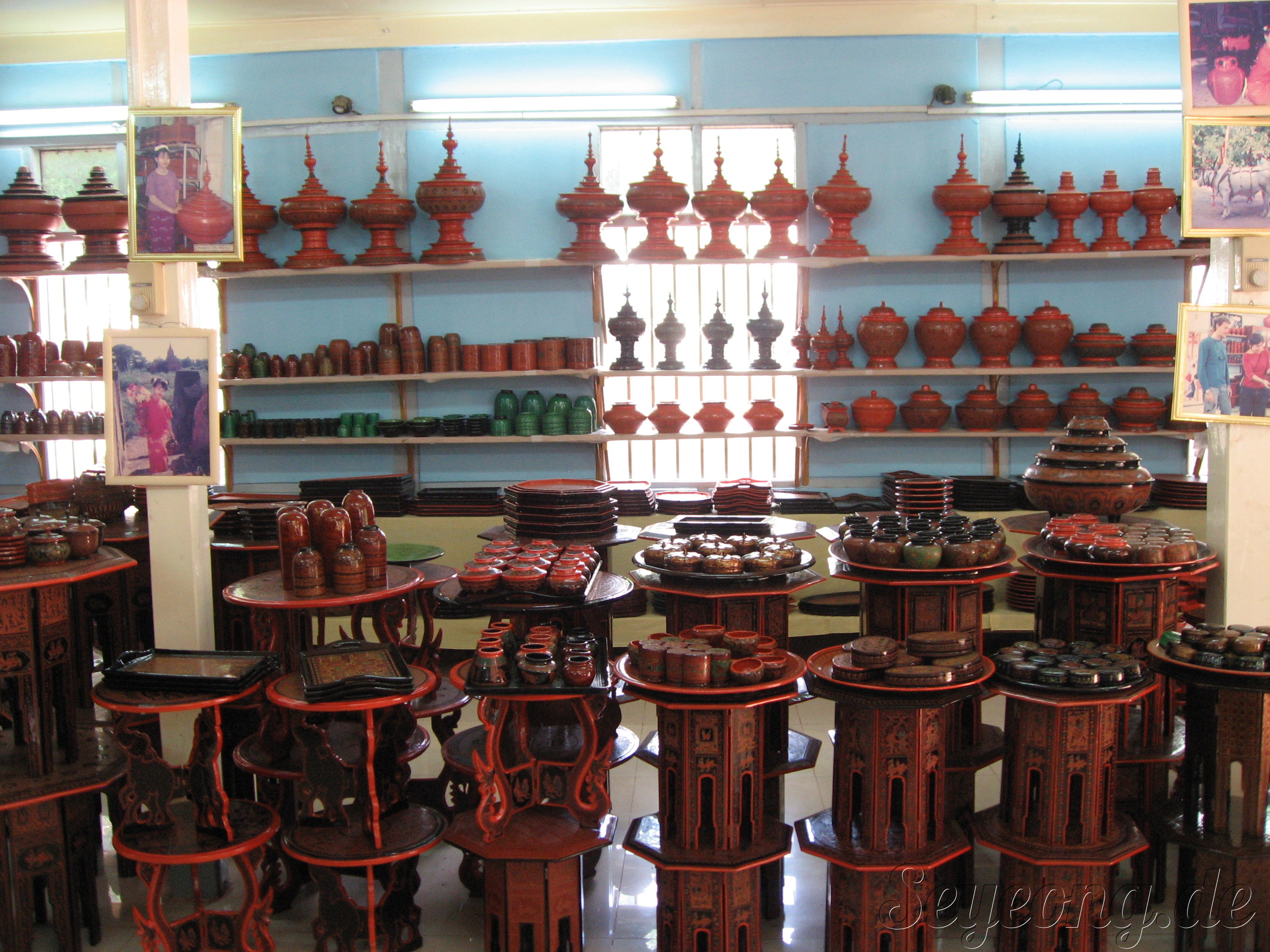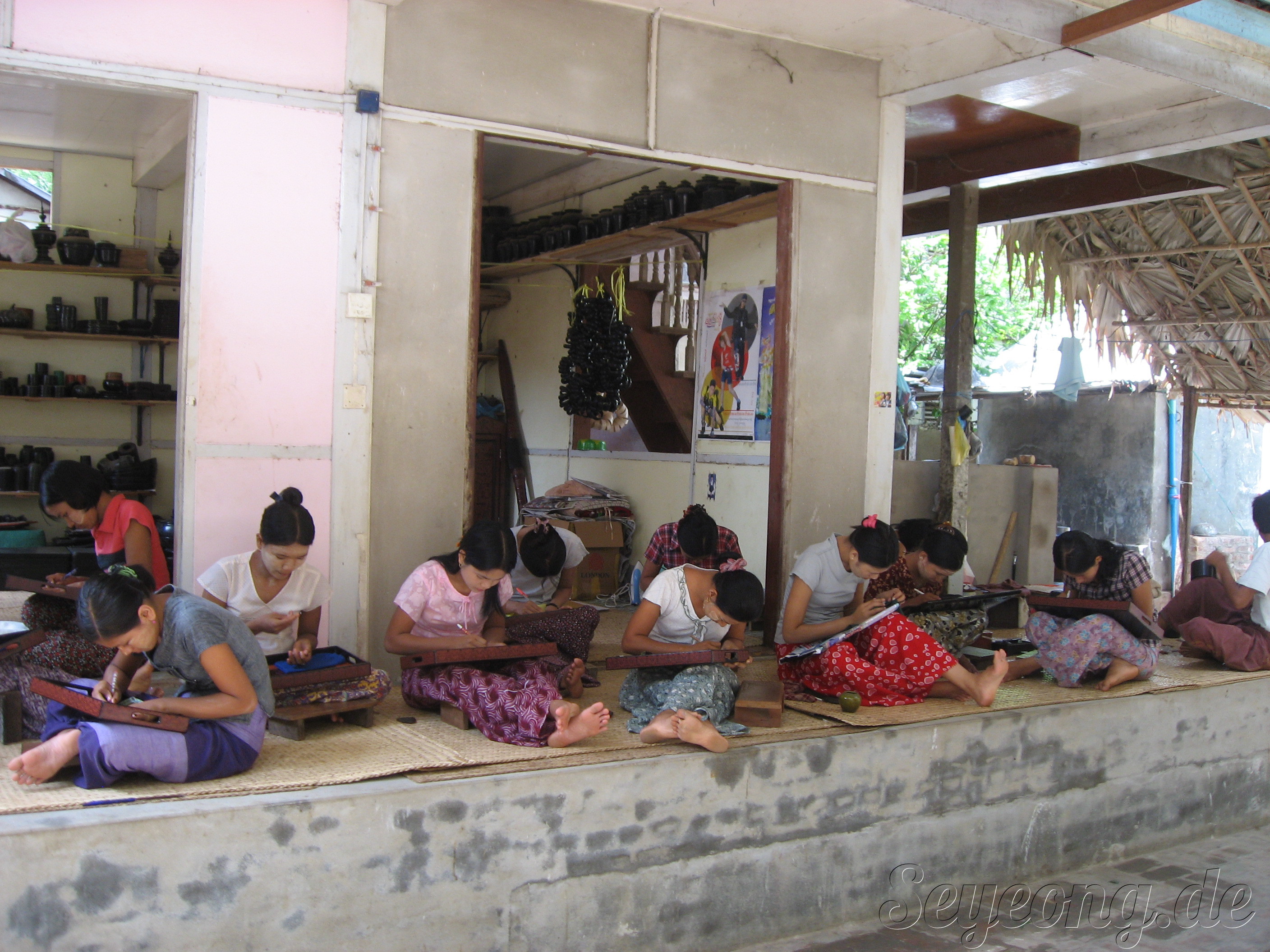 가게 뒤편에는 직접 손으로 조각을 하고 색을 넣는 수공예 작업을 하는 사람들로 붐비었다.