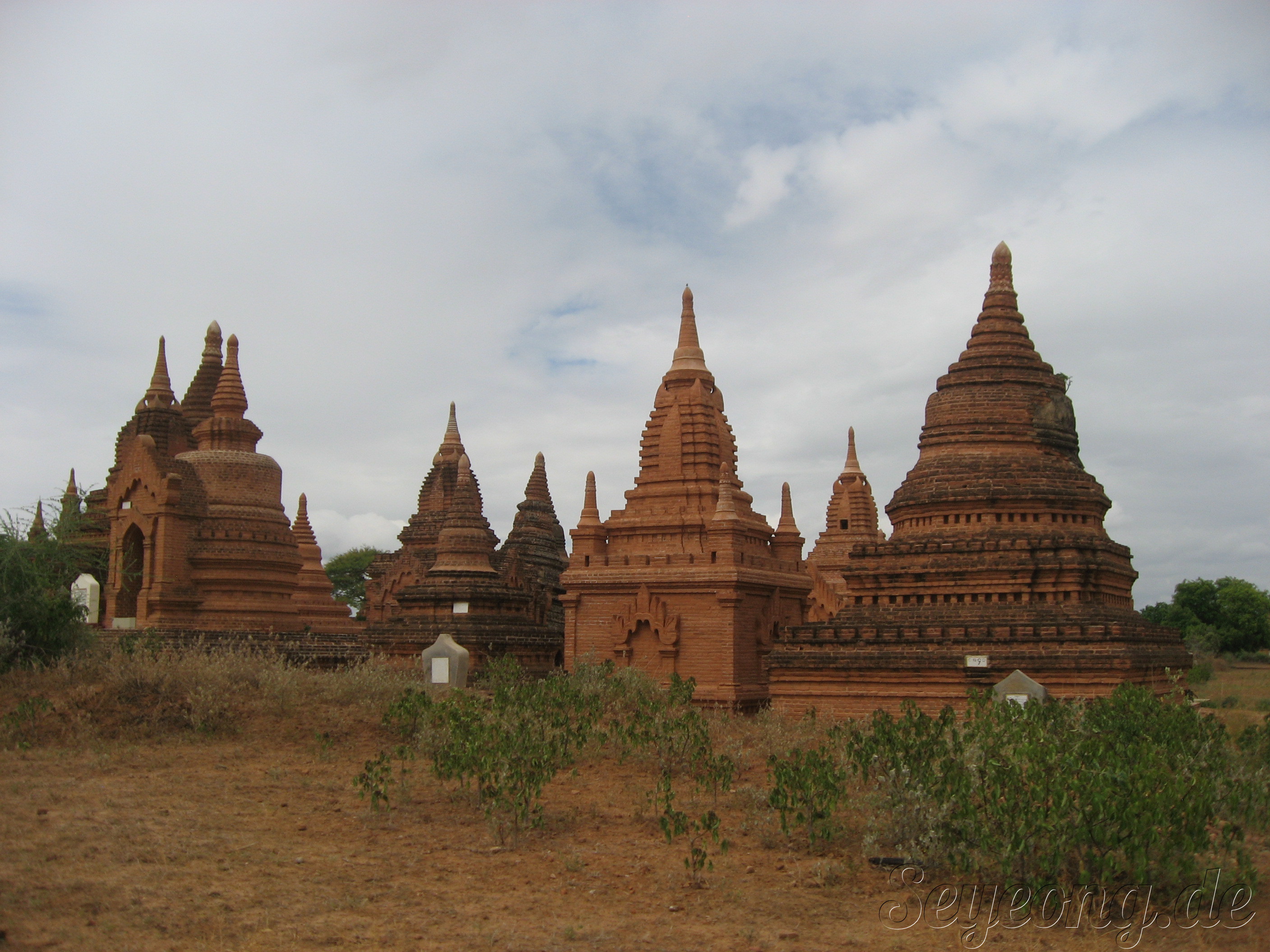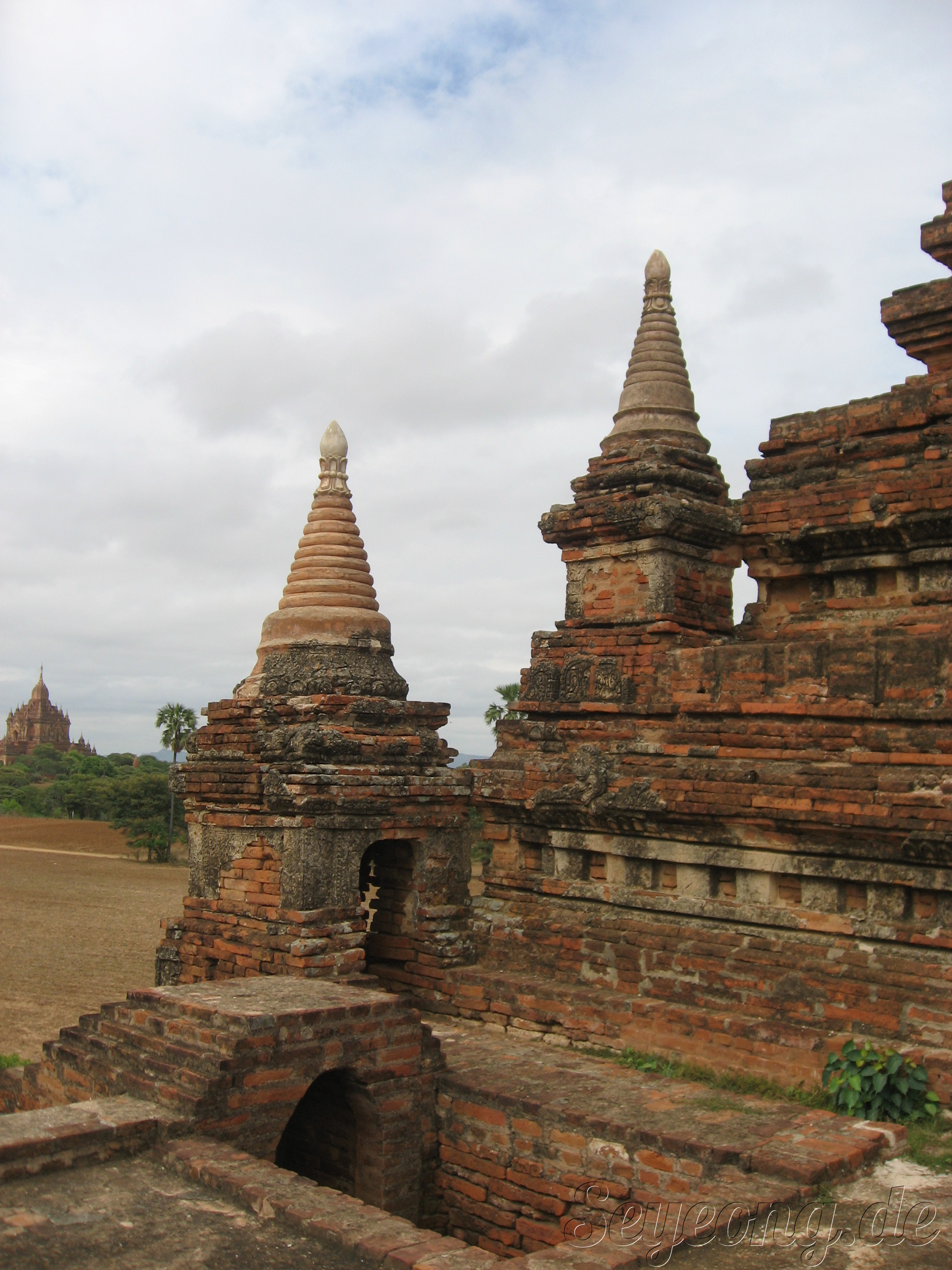 앙코르 와트 사원이 검은 사람보다 큰 돌으로 만들어진 데 반해 바간의 사원들은 모두 붉은 작은 벽돌로 만들어진 것이 특징이다.