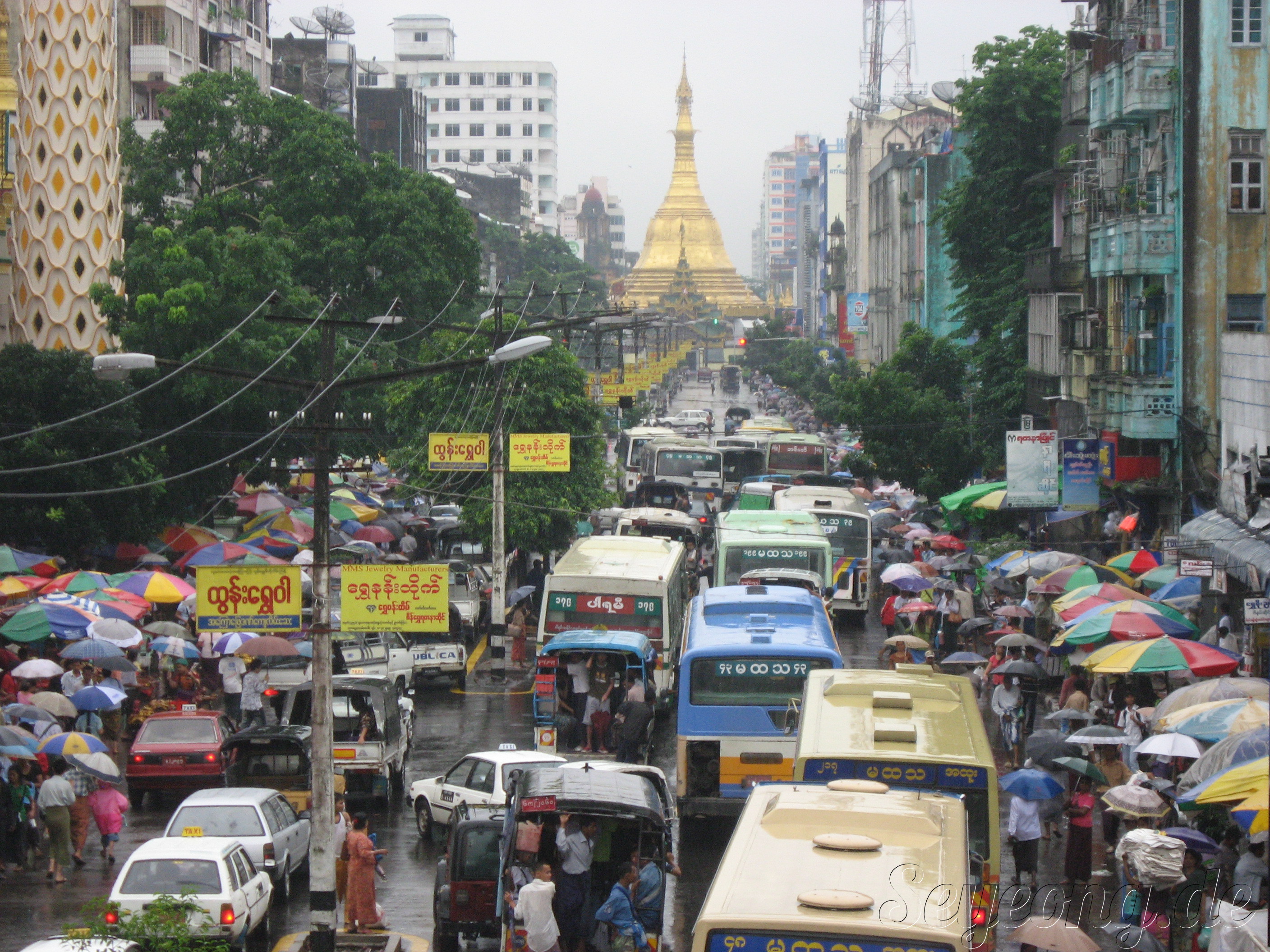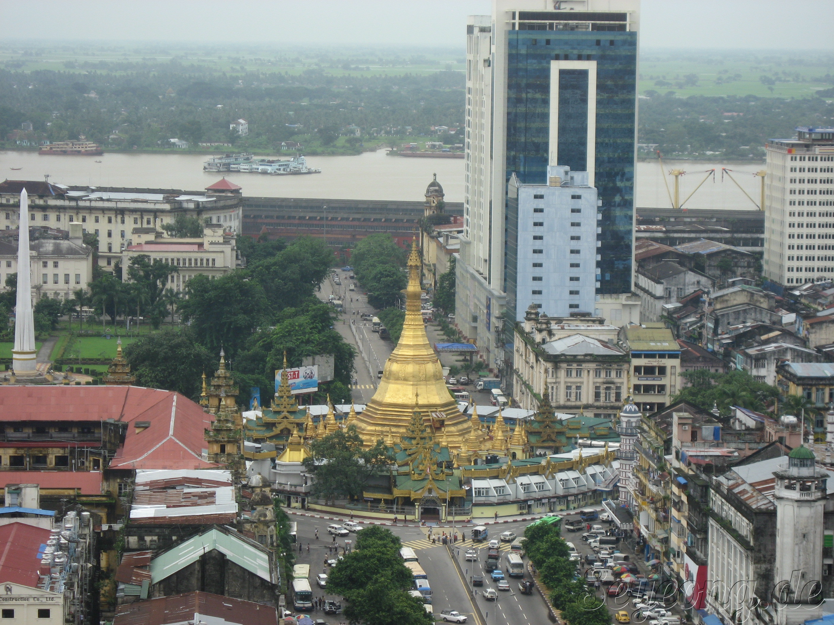 대표적 양곤 파야인 Sule Paya. 도시의 중심에 위치하고 있다.