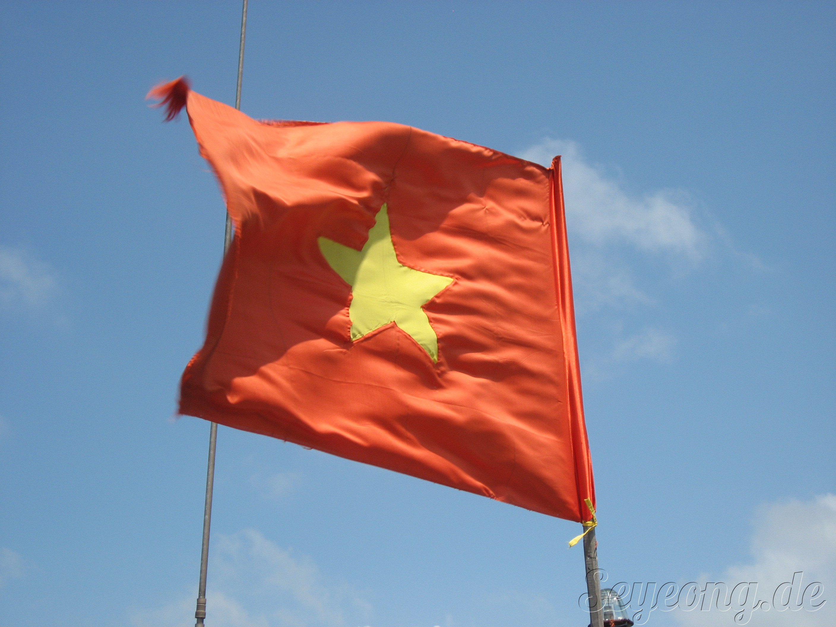 공산주의 풍의 베트남 국기는 열심히 펄럭이고
